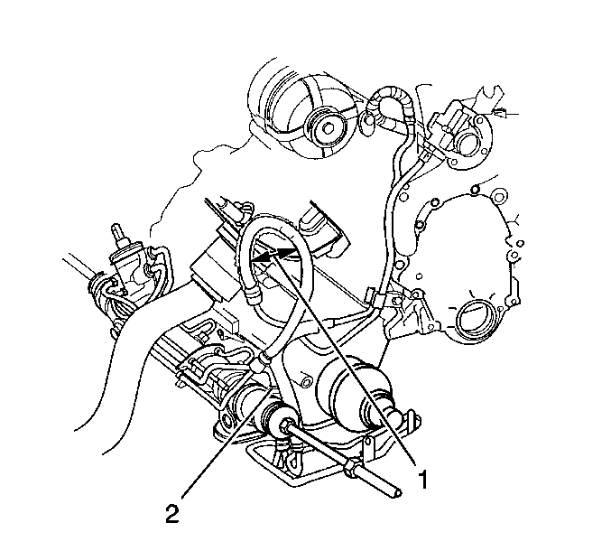Notice: The power steering pressure hose to the exhaust manifold clearance must be at least 43 mm (1.75 in) minimum or damage to the new power steering hose will result . If clearance is insufficient, the hose routing or the part number is incorrect. Be sure to follow the illustrated routing to avoid a build-up of torque in the P/S pressure hose assembly.