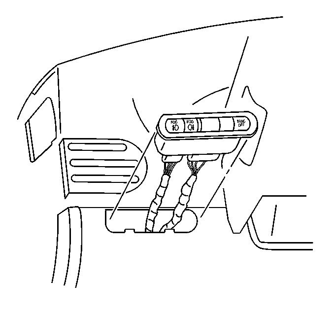 Press to release the switch retaining tabs and remove the fog lamp switch from the steering column filler panel.