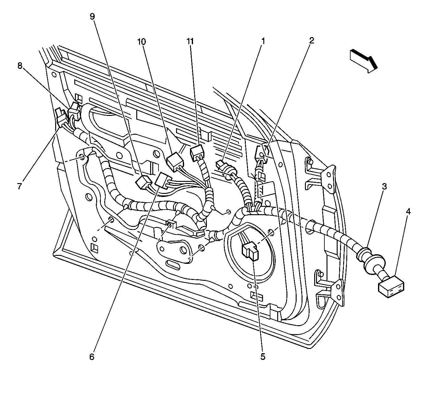 (3)Right Rear Radio Speaker Connector