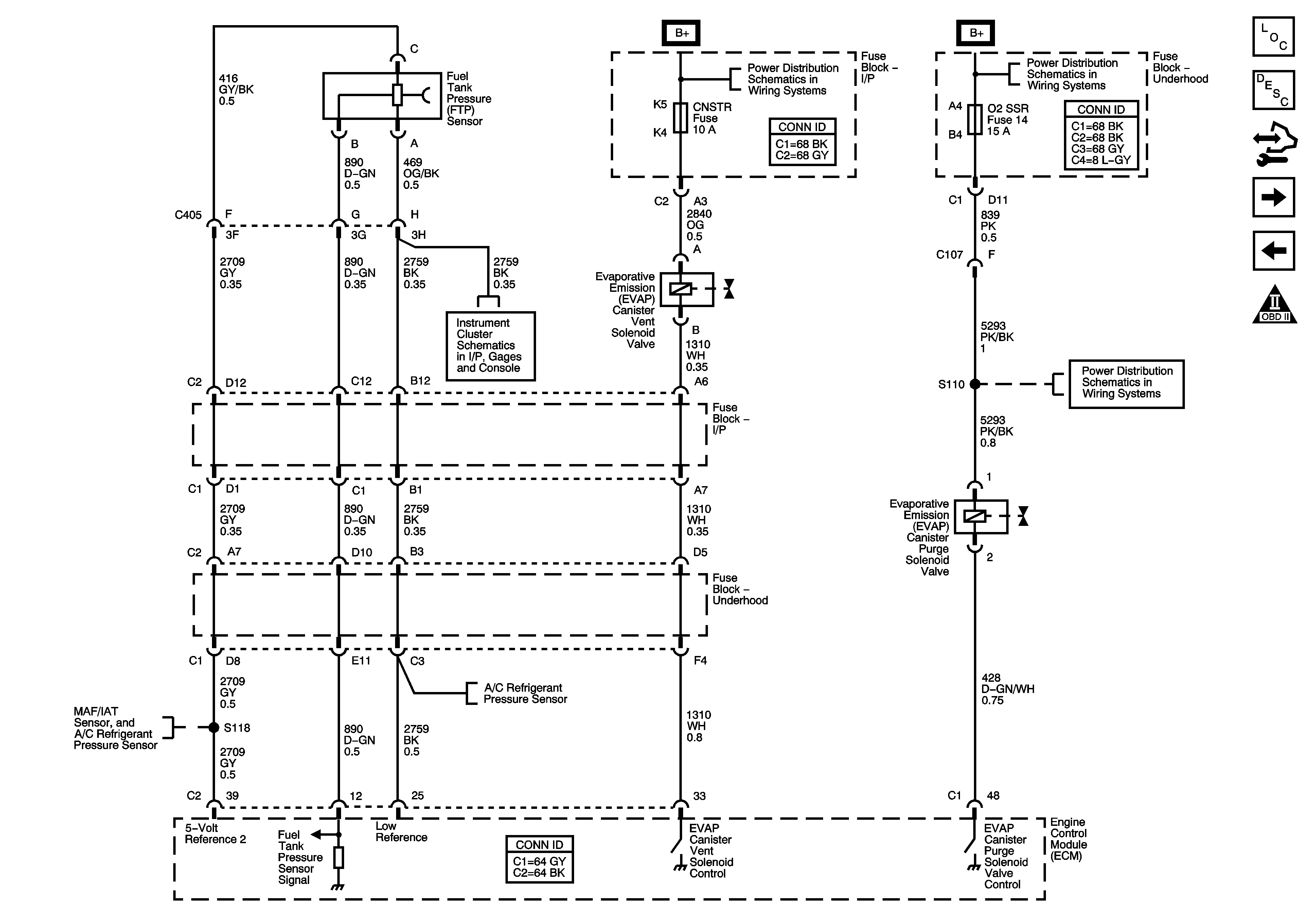 Fuse Block - Underhood BATT MAIN 1 Fuse, Fuse Block - I/P PK LAMPS, DISPLAYS, CHMSL/BKUP, INT LIGHT, RFA/MOD, RADIO/AMP, ONSTAR/ALDL, HVAC, and CANISTER Fuses and PK LP Relay