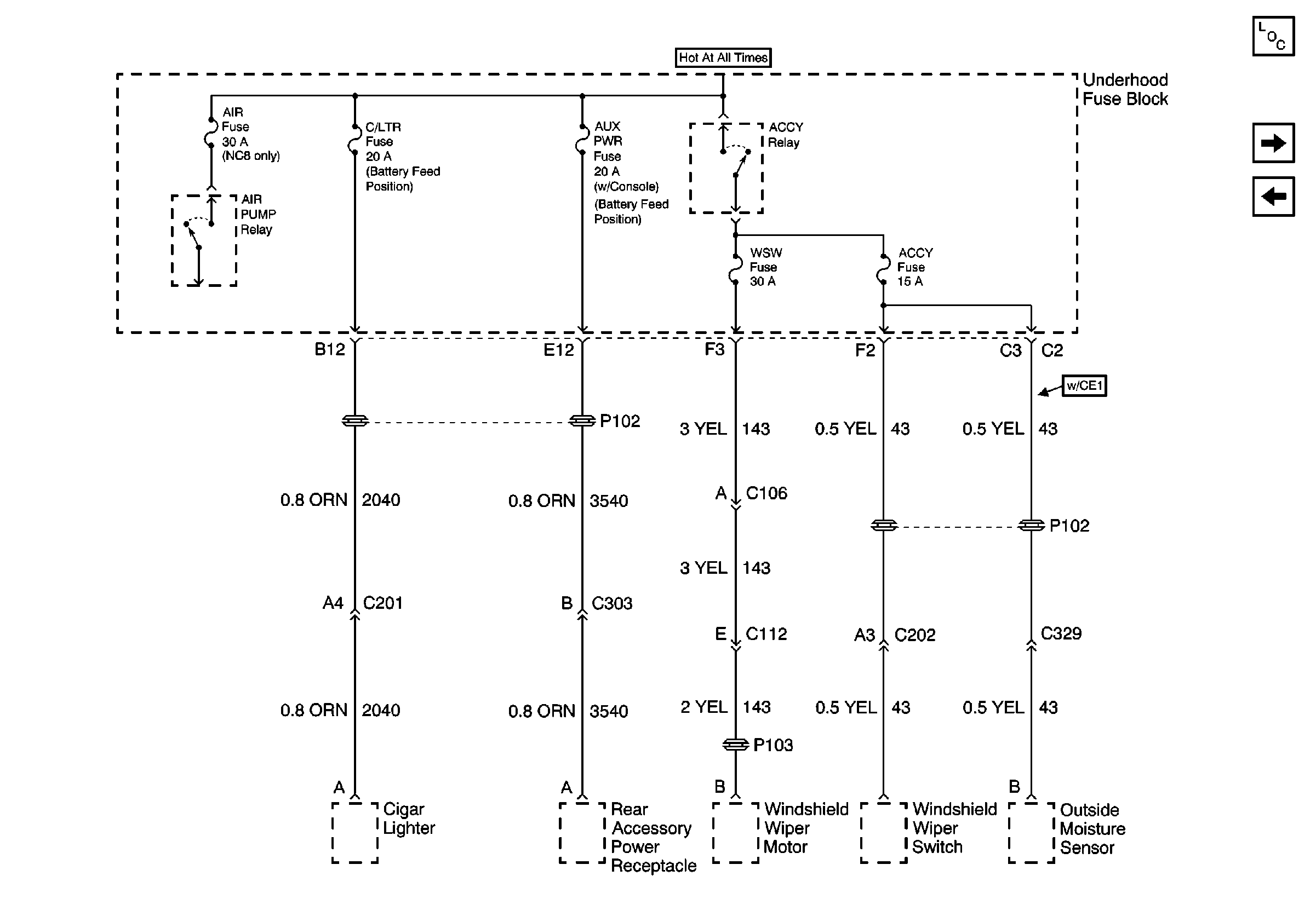 AIR PUMP and ACCY Relays, AIR, C/LTR, AUX PWR, WSW and ACCY Fuses (Underhood