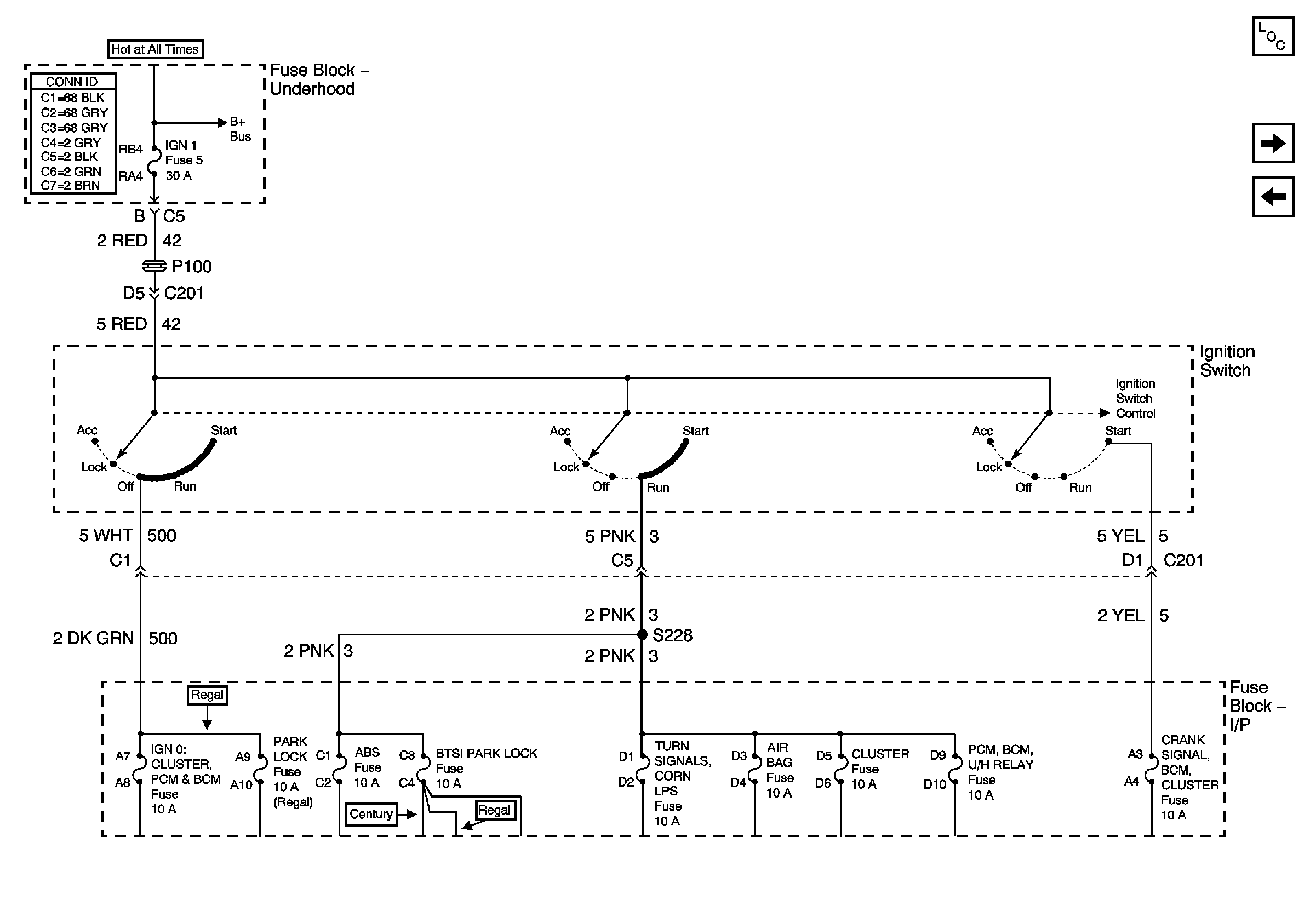 Fuse Block - Underhood LP PARK Fuse, Fuse Block - I/P FRT PARK LP, FOG LP Fuse and PWR WINDOWS and SUNROOF Circuit Breaker