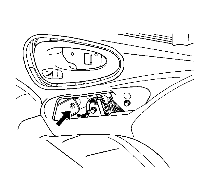 - Remove the door panel screw (1) through the hole in the