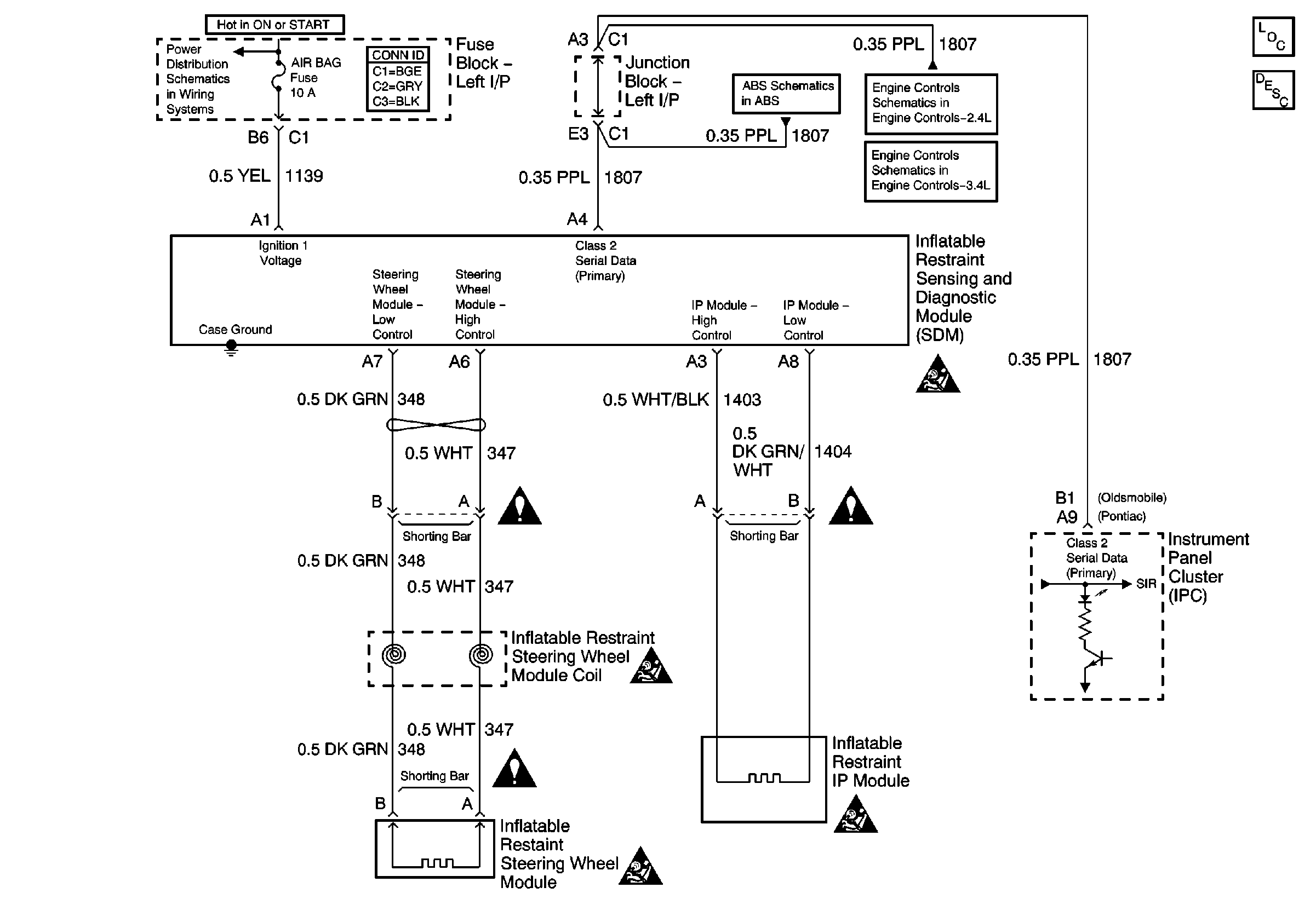 IGN SW-BATT2, WIPER, AIR BAG, TURN LPS, IGN MOD, BU LMP, PCM IGN, F/PINJR, A/C BFC, AUTO TRANS, ABS, IGN Fuses