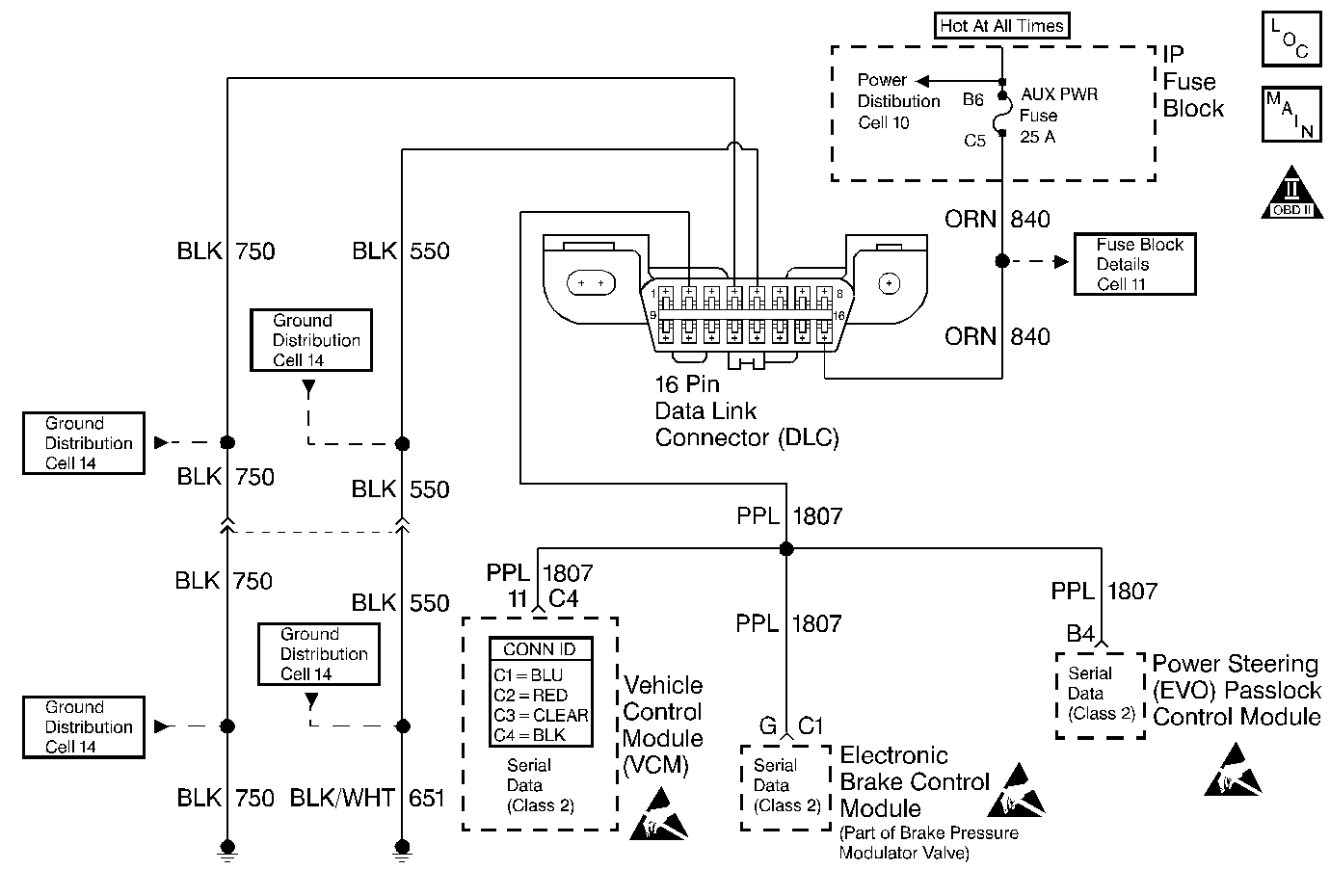 The Class 2 Serial Data circuit to the DLC allows bi-directional communication between the VCM and the scan tool. This is accomplished through pin 2 of the DLC. If communication between the scan tool and the VCM cannot be established, the procedure in the DLC Diagnosis table should be used to diagnose the condition.