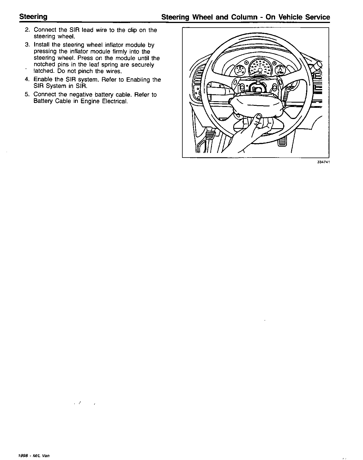 THIS BULLETIN IS BEING ISSUED TO ADD THE PROCEDURE FOR REMOVAL/INSTALLATION OF THE STEERING WHEEL INFLATOR MODULE, THE HORN SWITCH, AND THE STEERING WHEEL TO SECTION 2F OF THE SERVICE MANUAL.