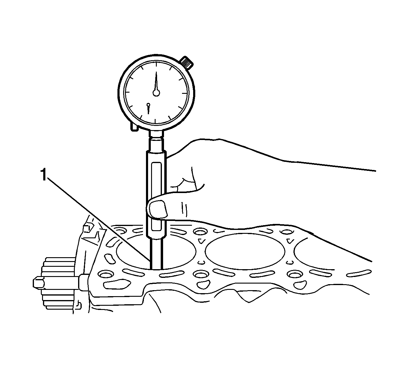 3. Measure the inner diameter of the cylinder (1). If it is out of specification, replace it. Refer to Engine Mechanical Specifications.