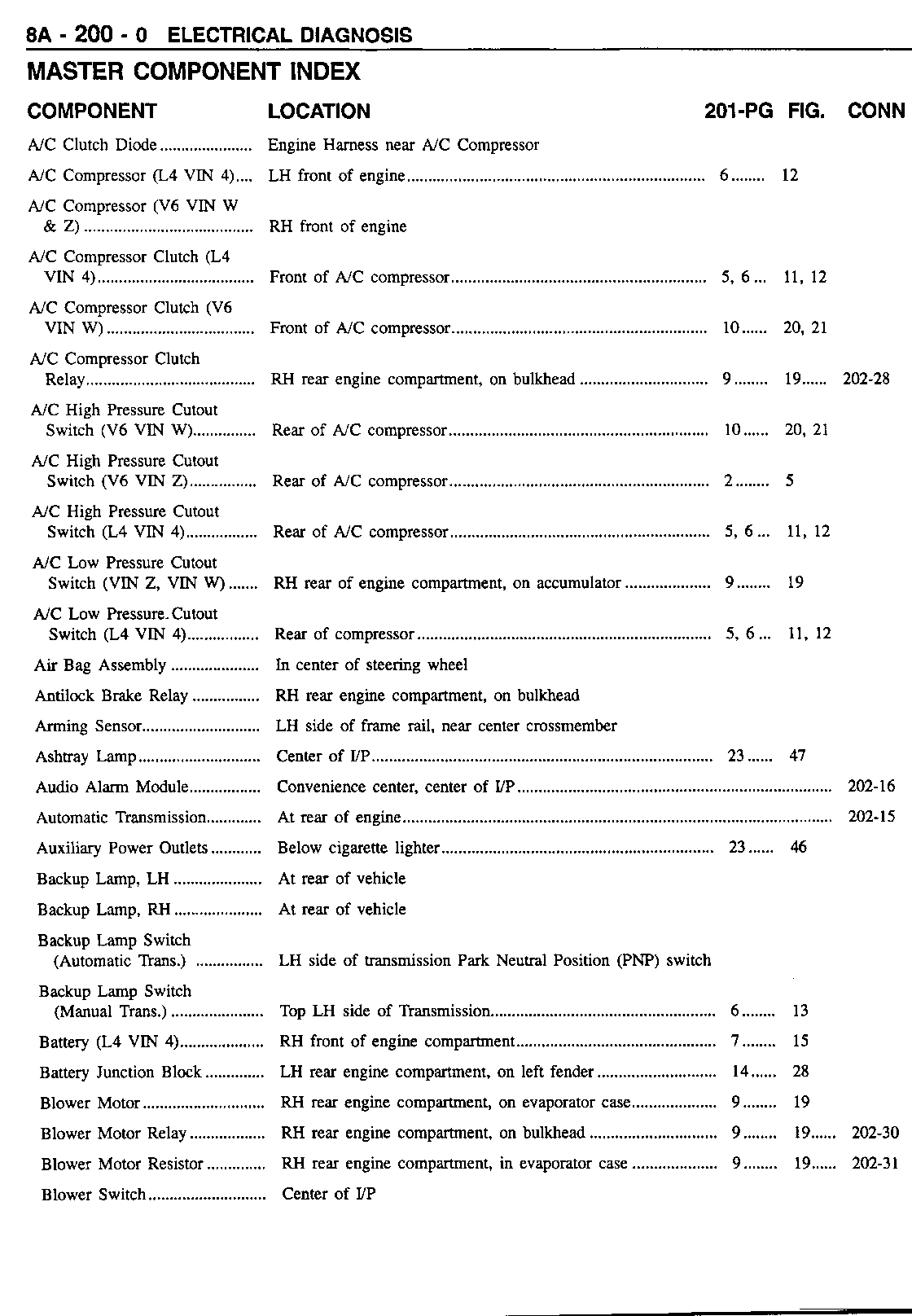 THIS BULLETIN PROVIDES SECTION 8A-200, "MASTER COMPONENT INDEX," WHICH SUPERSEDES ALL INDIVIDUAL SECTION COMPONENT LOCATION TABLES IN THE 1995 S/T SERVICE MANUAL BOOK 2 FINAL EDITION.