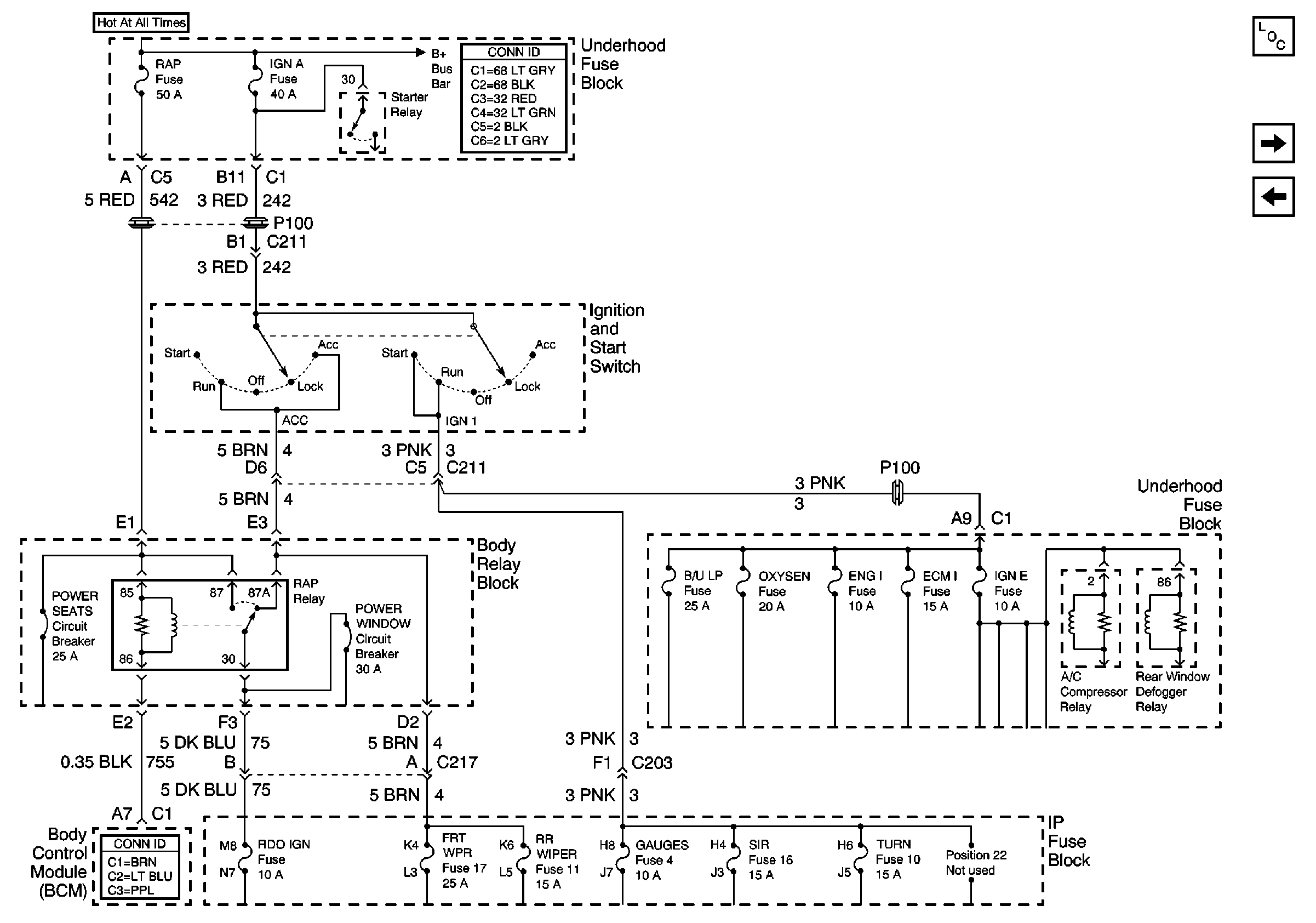 IGN E, GAUGES, and SIR Fuses