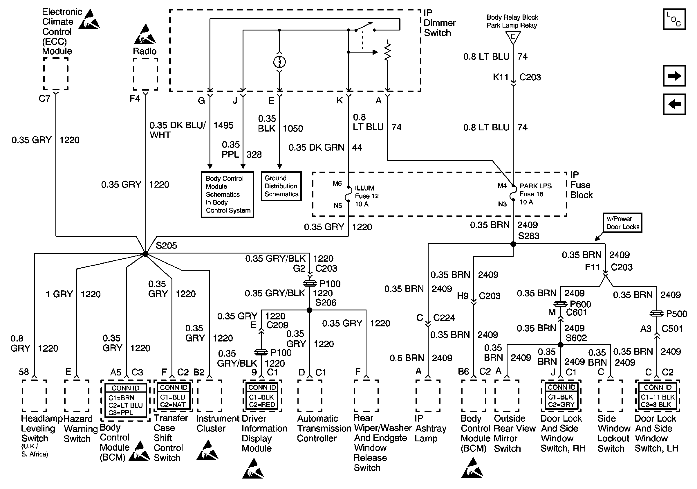 PARK LP, FR PRK, LR PRK, RR PRK, and TRL PRK Fuses