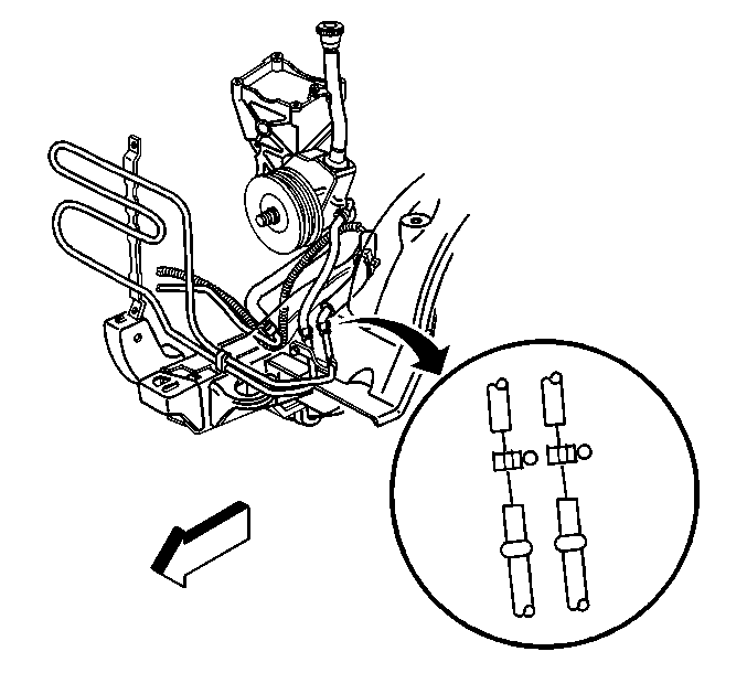 Notice: Do not start the vehicle with any power steering gear inlet or outlet hoses disconnected. When disconnected, plug or cap all openings of components. Failure to do so could result in contamination or loss of power steering fluid and damage to the system.