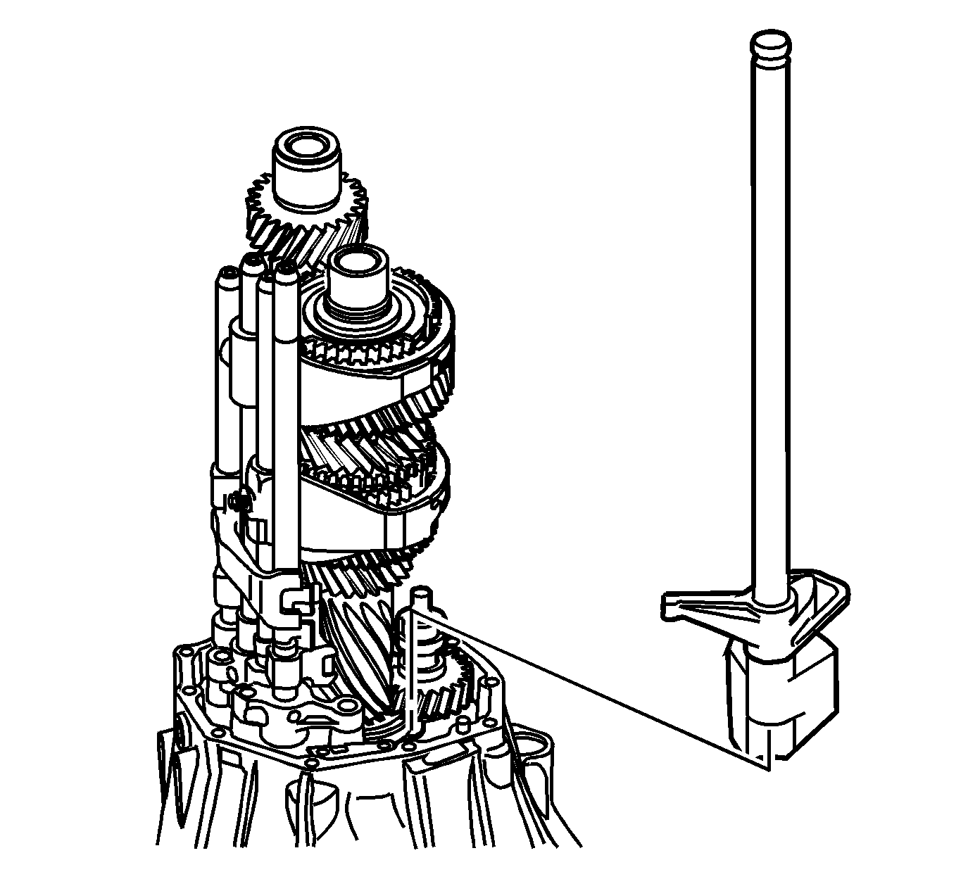 - Apply lubricant GM P/N 88862475 (Canadian P/N 88862476) to each gear shift fork and gear shift head. Join the shift rail assembly to the input shaft and countershaft assembly.