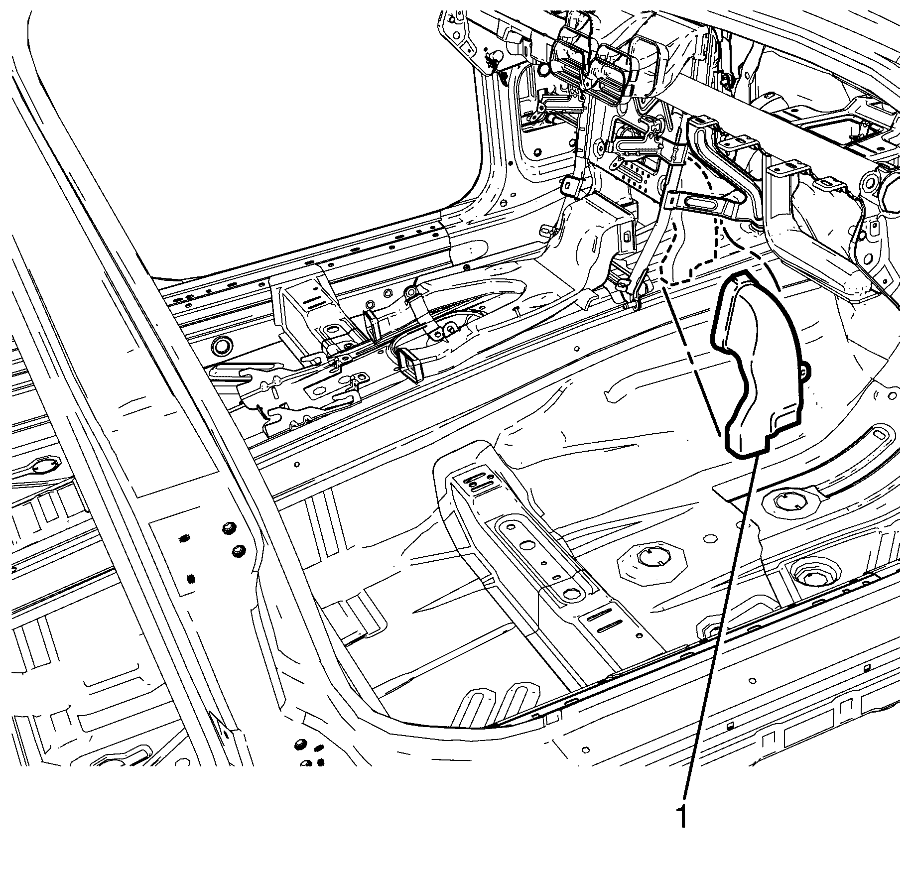 Remove the rear floor air outlet duct (1) from the floor (2).