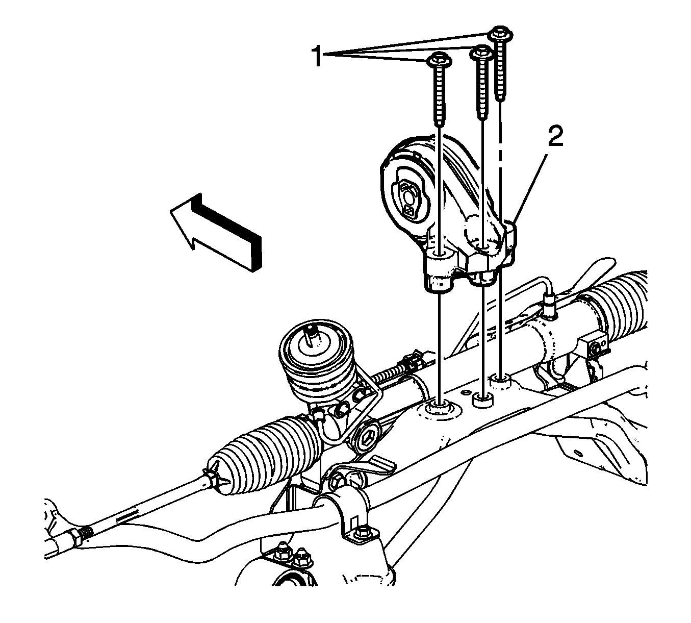 Install the rear transmission mount to frame bolts (1) and tighten to