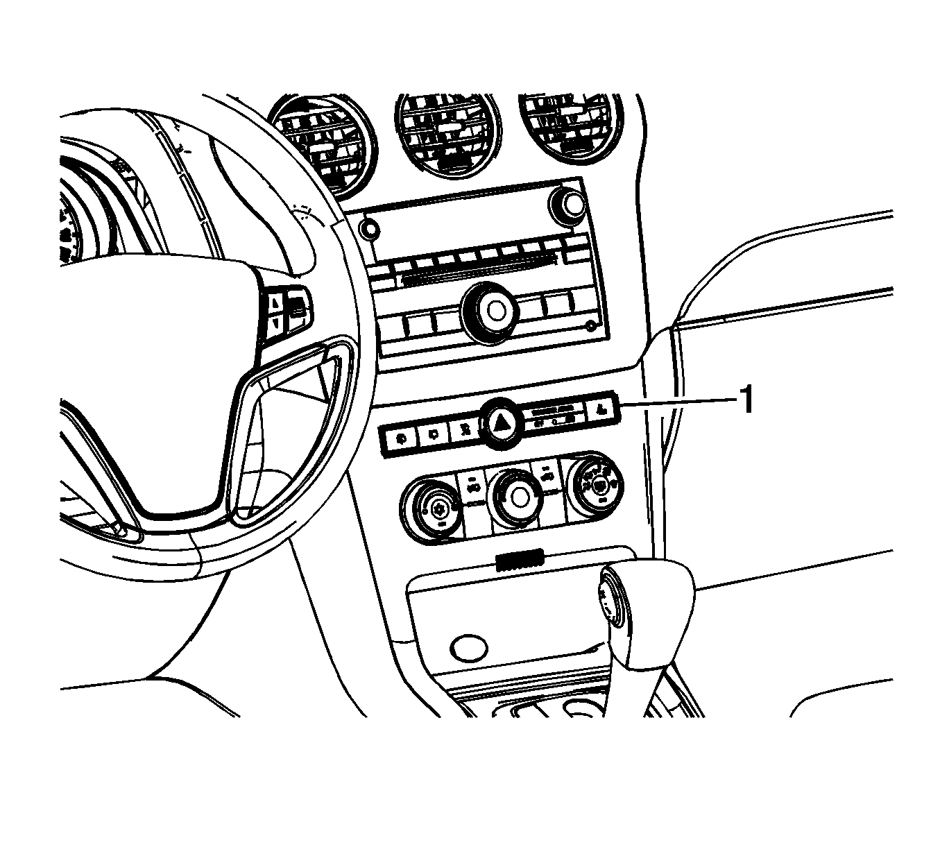 The electronic traction control switch (1) located in the driver information display assembly can not be serviced separately. Should the switch assembly need to be replaced, the entire driver information display assembly will need to be replaced. Refer to Driver Information Display Switch Replacement .