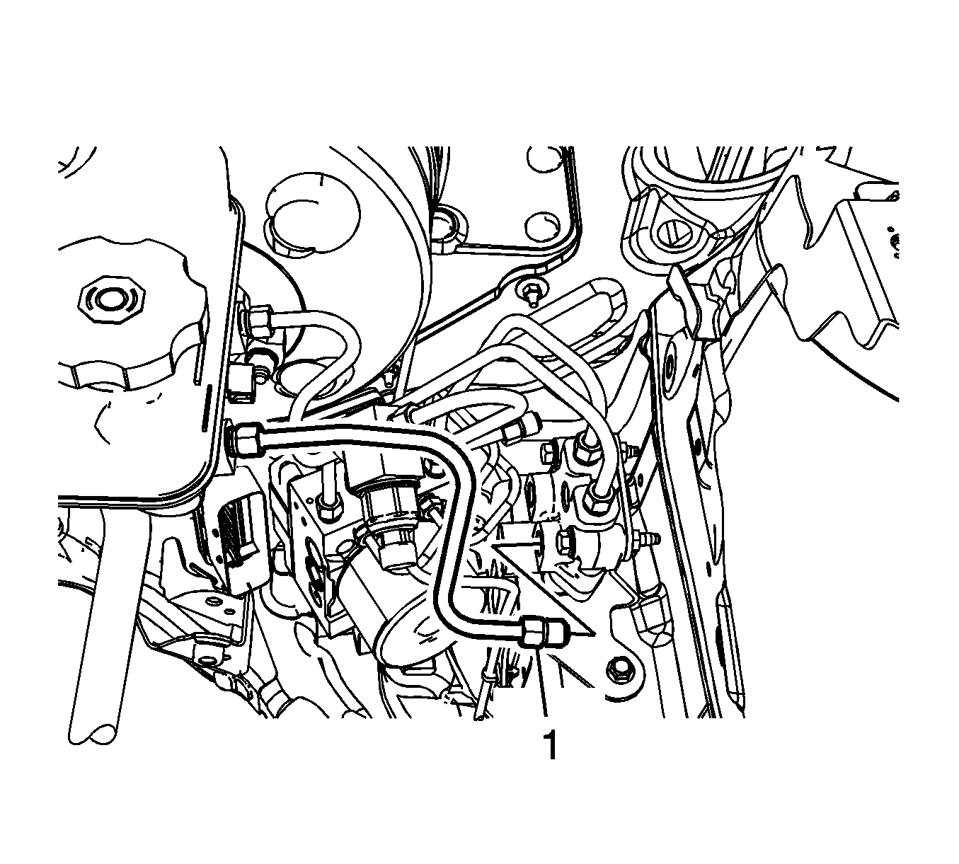 - Disconnect the secondary brake pipe outlet fitting (1) at the brake delay valve.