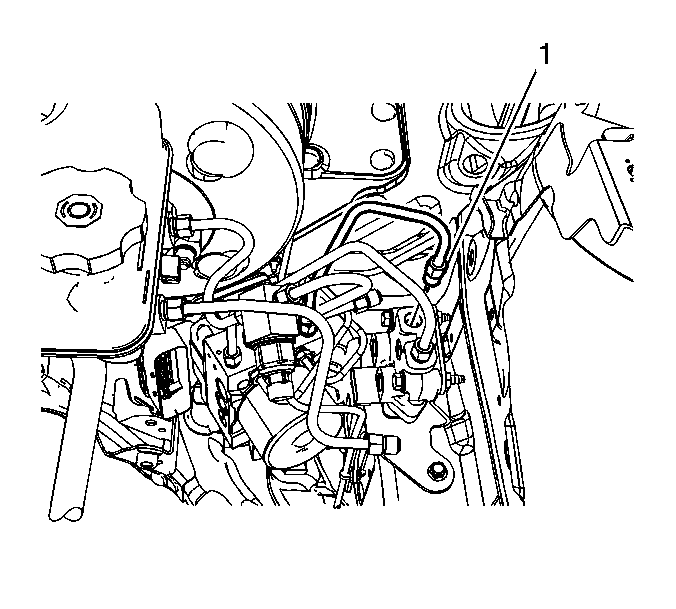 - Disconnect the secondary brake pipe inlet fitting (1) at the brake delay valve.