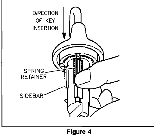 THE SIDE BAR WILL DROP DOWN FLUSH WITH CYLINDER DIAMETER IF THE TUMBLERS ARE INSTALLED PROPERLY. DISASSEMBLE AND REASSEMBLE IF NECESSARY. (SEE FIGURE 4).