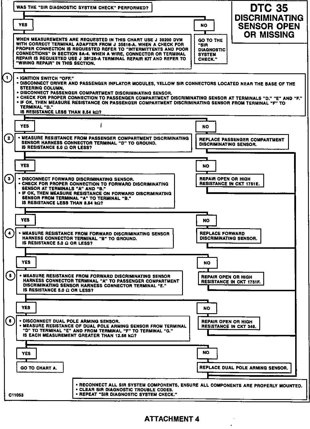 4. DTC 35 "DISCRIMINATING SENSOR OPEN OR MISSING", (PAGE 9J-60) AND DTC 35 CHART (PAGE 9J-61) - REVISED TEXT, AS FOLLOWS, AND REVISED DTC 35 CHART (SEE ATTACHMENT #4).