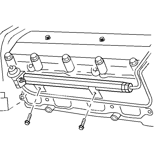 Remove the fuel line retaining clamp from the bracket on top of the intake cam housing.