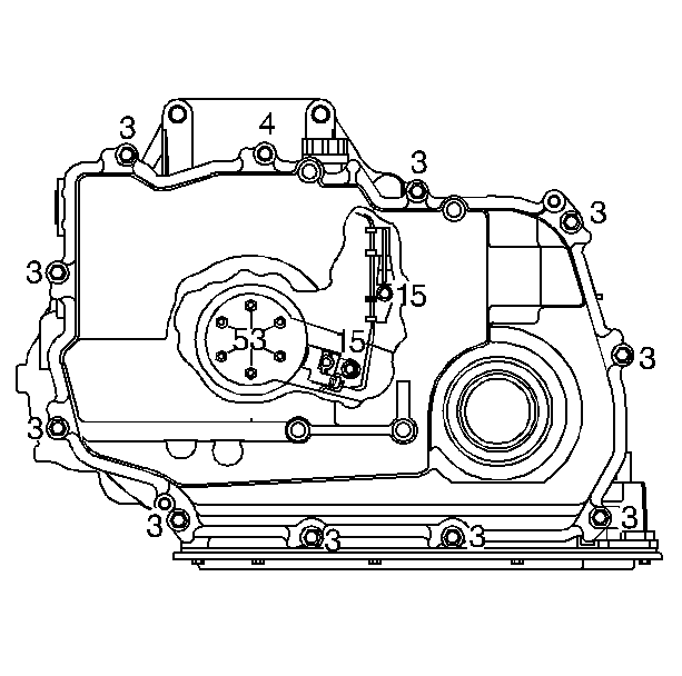 Hand start and then tighten the side cover bolts and stud to 20 N·m (15 lb ft).