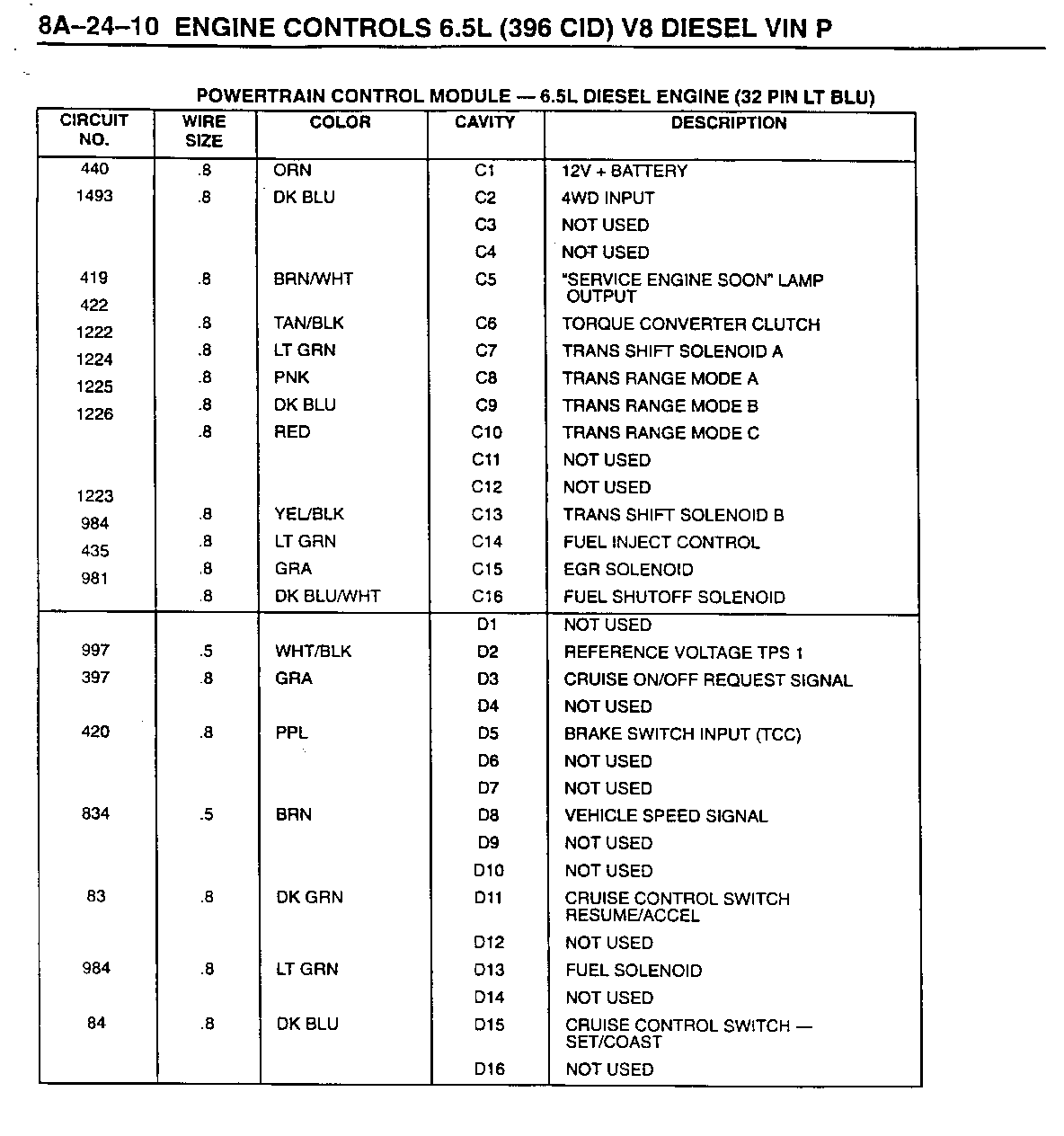THE FOLLOWING REPRESENTS NEW INFORMATION FOR SECTION 8A-24 UNDER ENGINE CONTROLS 6.5L (396 CID) V8 DIESEL VIN P OF THE 1994 G VAN MODELS ELECTRICAL DIAGNOSIS MANUAL, NATP-9445.