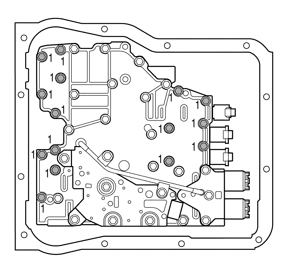 Notice: Do not drop the manual valve when removing or installing the control valve assembly onto or from the transmission case.