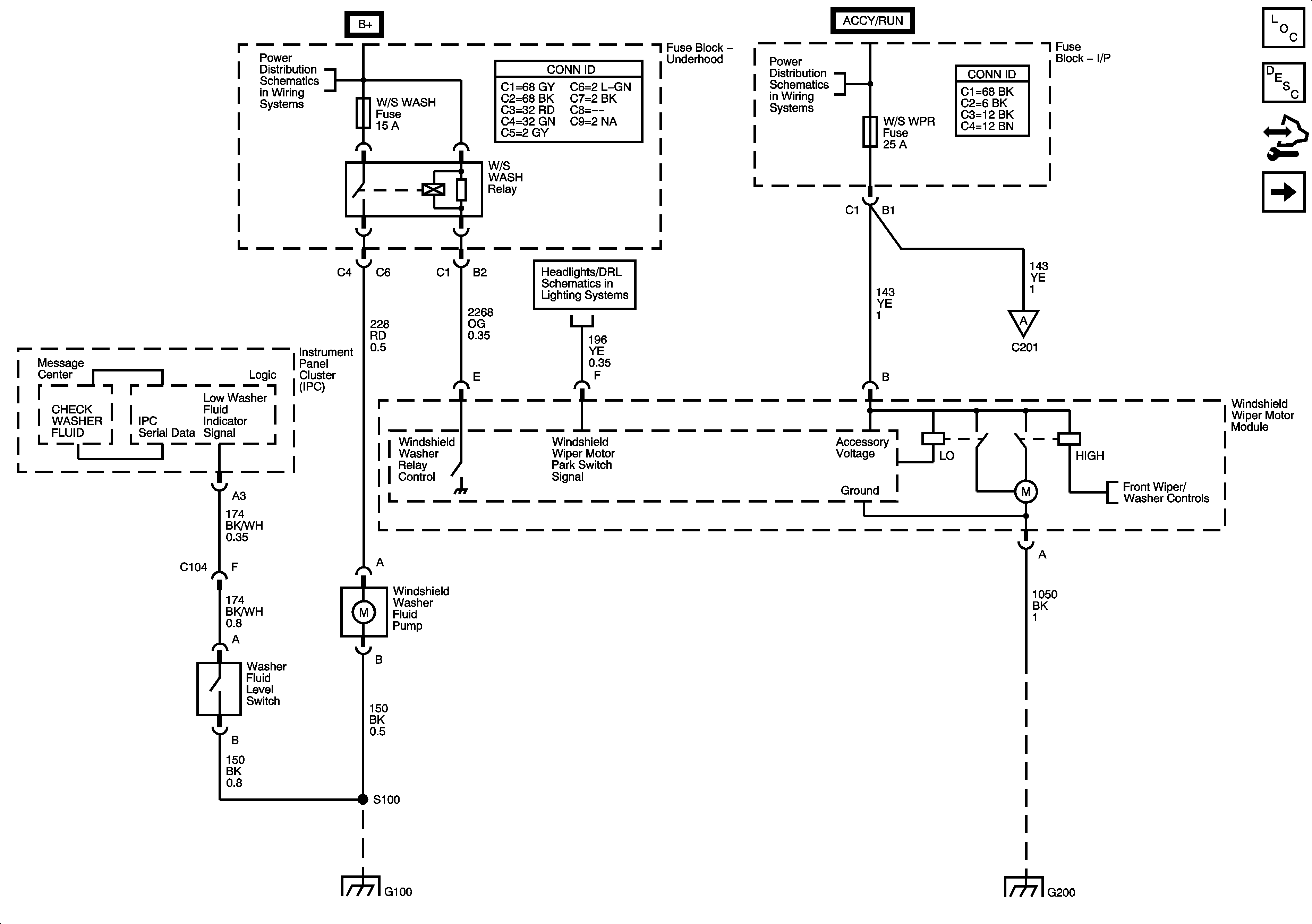 Front Wiper/Washer Power, Ground, and Controls