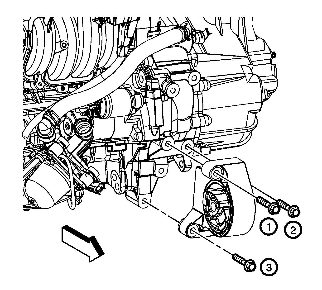 3. Hand start the front transaxle mount through bolt.
