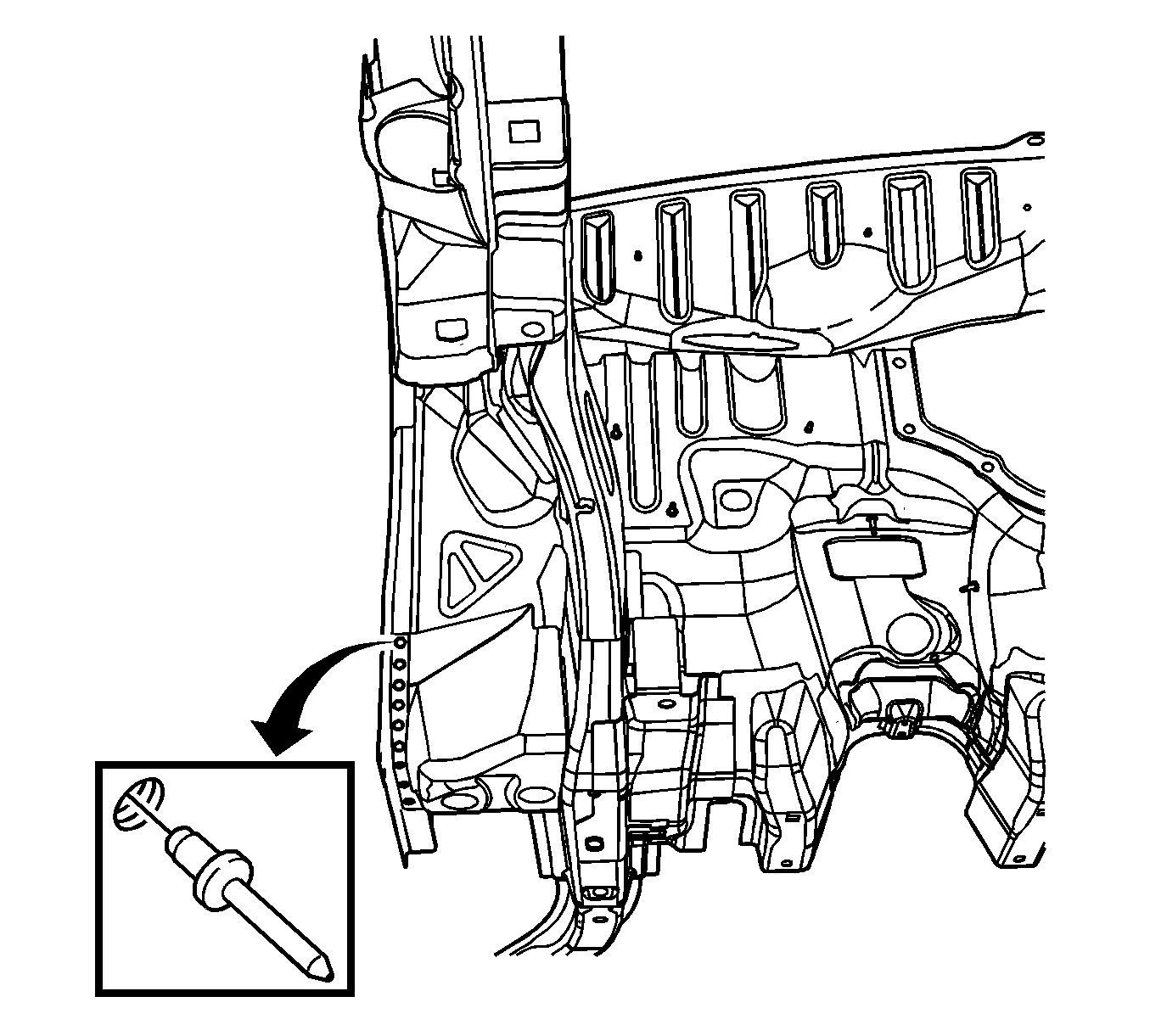 The front of the dash panel and plenum lower are formed from laminated steel. This steel is constructed by bonding 2 pieces of cold rolled steel with a viscosities layer of adhesive. MIG welding laminated steel does not meet GM Corporate standards for structural integrity. As an alternative, all factory welds may be replaced by using the rivet and adhesive bond method described in the installation portion of this procedure. The rivet and adhesive bond method must only be used in the areas described in this procedure.