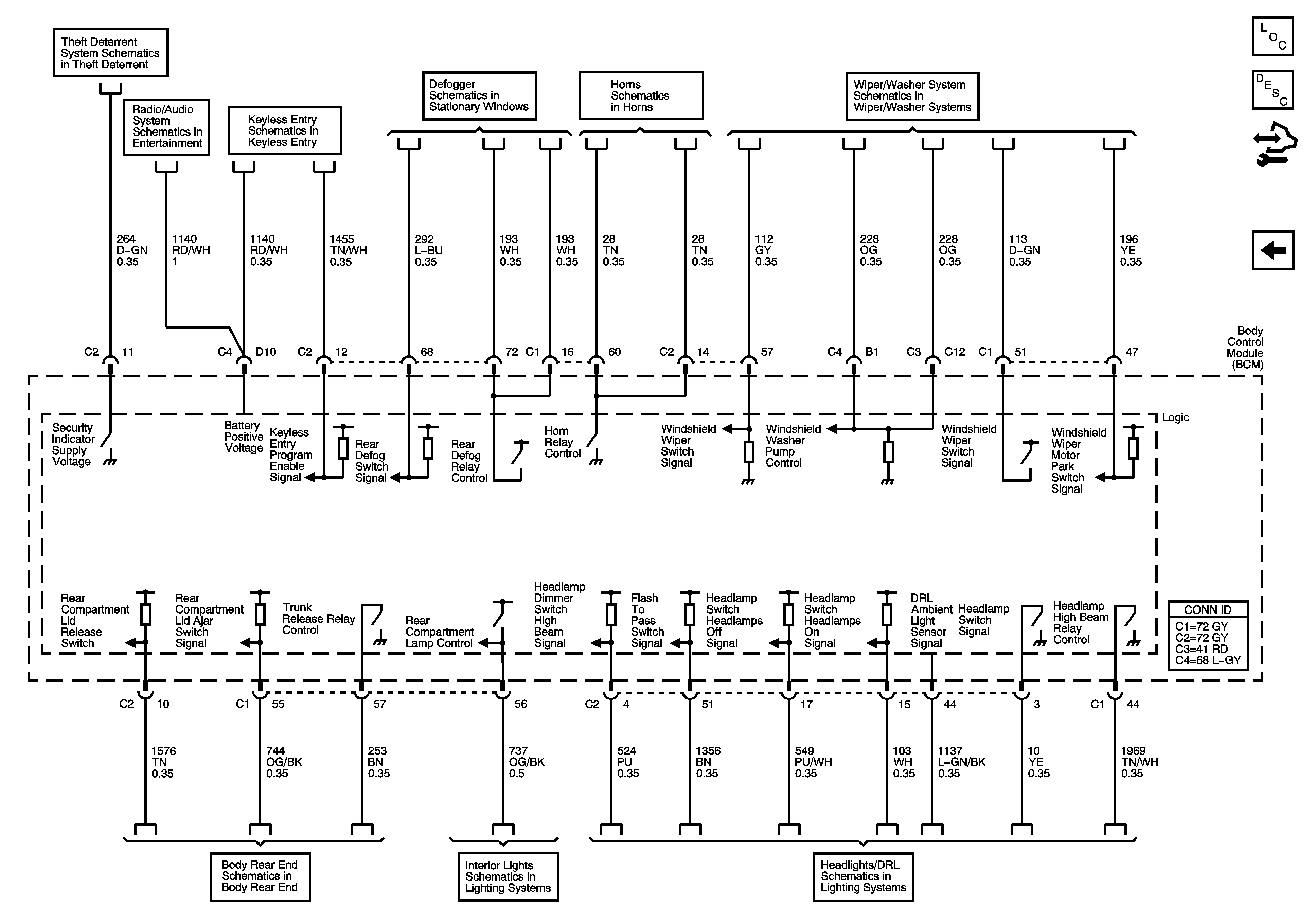 Body Rear End, Defogger, Headlights/DRL, Horns, and Wiper/Washer References