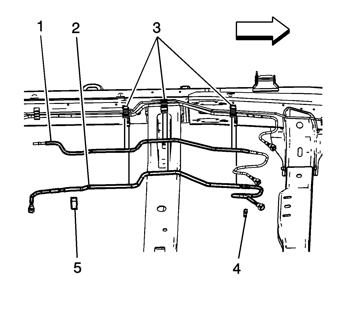 4. Refer to Plastic Collar Quick Connect Fitting Service in order to disconnect the following from the chassis bundle (2, 3):