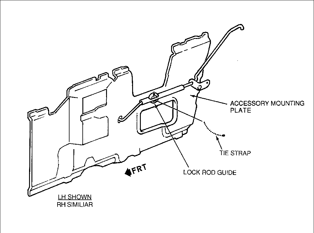 - DOOR MOUNTING ACCESSORY PLATE 1. RATTLE FROM INSIDE DOOR LOCK 1. REMOVE LOCK ROD GUIDE. PLACE ROD CONTACTING ACCESSORY A PIECE OF CLOSED CELL FOAM MOUNTING PLATE. REARWARD OF THIS LOCATION ON THE MOUNTING PLATE WHERE THE ROD MAY CONTACT THE PLATE. REPLACE THE LOCK ROD GUIDE WITH A TIE STRAP. SEE FIGURE 13. FIGURES: 13
