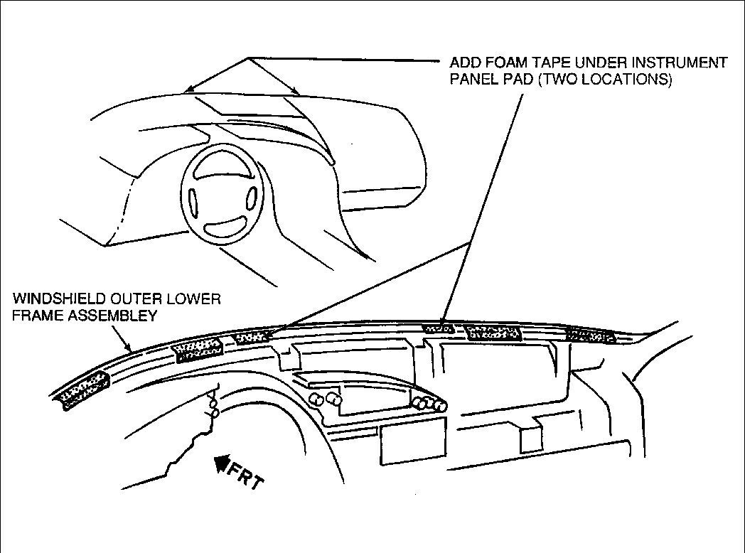 - INSTRUMENT PAD 1. BUZZ WHERE INSTRUMENT PANEL 1. ADD 6 MM THICK FOAM TAPE PAD RUBS WINDSHIELD OUTER (100 X 20 MM; 4 X 3/4") LOWER FRAME ASSEMBLY. TO WINDSHIELD OUTER LOWER FRAME ASSEMBLY AS SHOWN IN FIGURE 9.