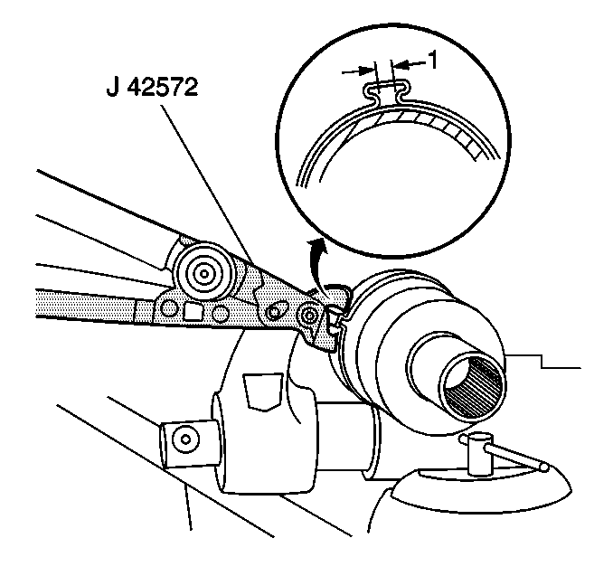 3. Using J 46588 , remove the large seal retaining clamp from the CV joint seal.