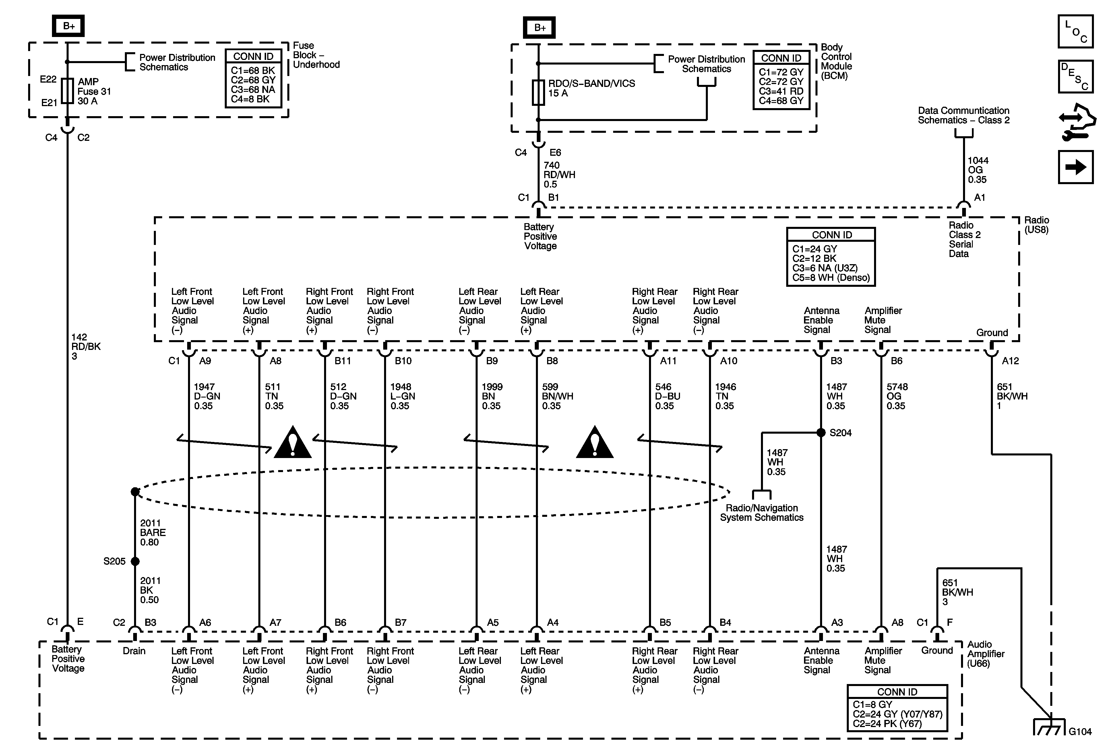 Power, Ground, DLC, Audio Amplifier, Radio, Audio Signals and Front Speakers (U65)