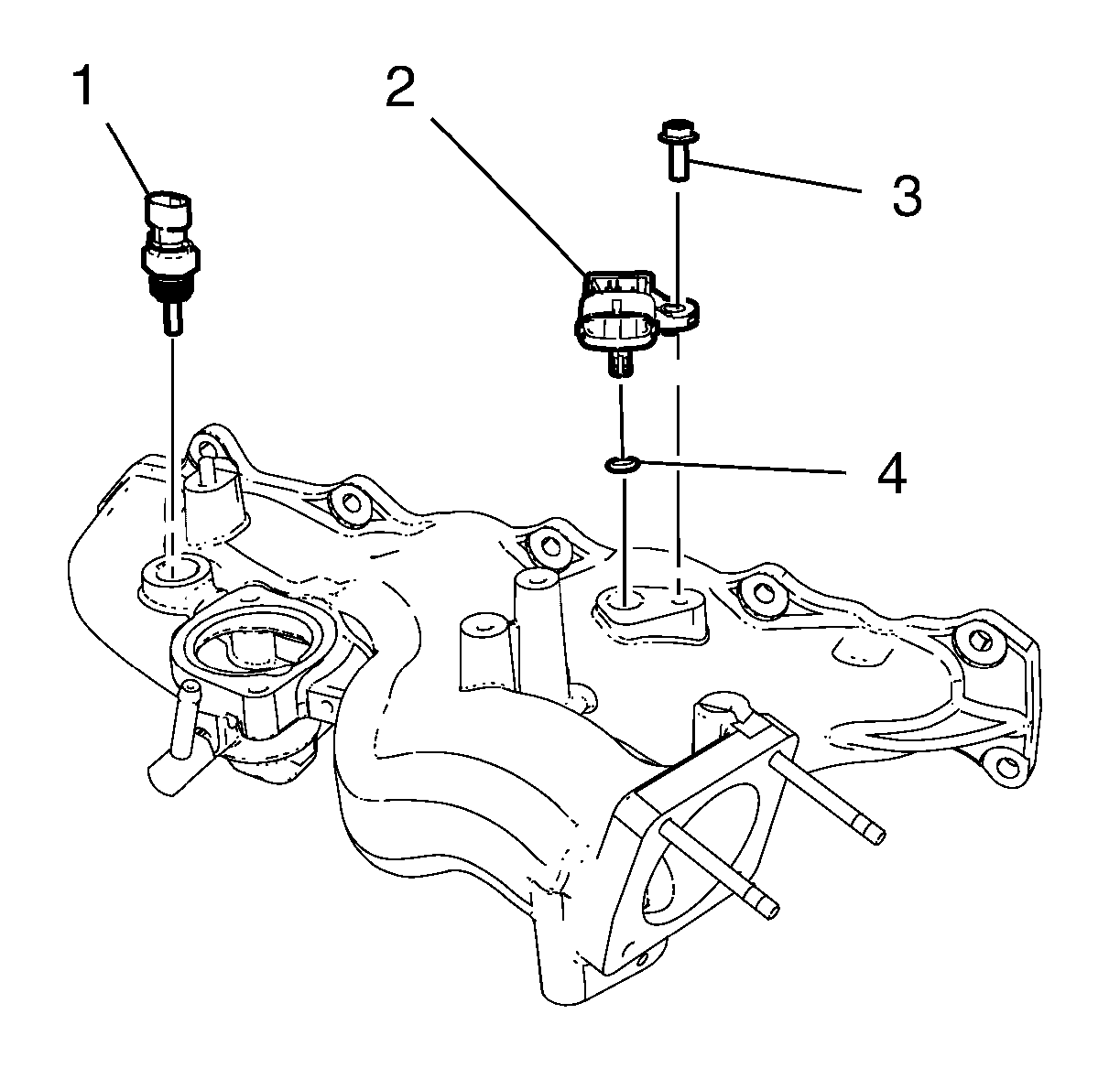 - Install the intake air pressure and temperature sensor bolt (3) and tighten to