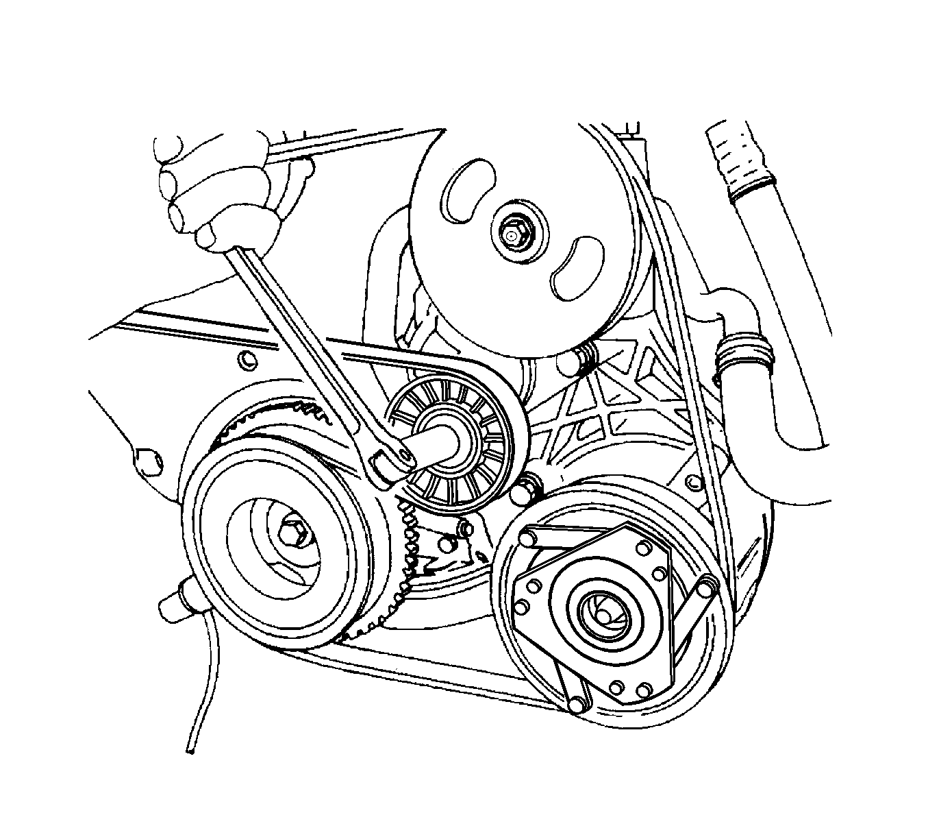 2. With the wrench in place on the tensioner bolt, loop the serpentine accessory drive belt loosely over the pulleys.