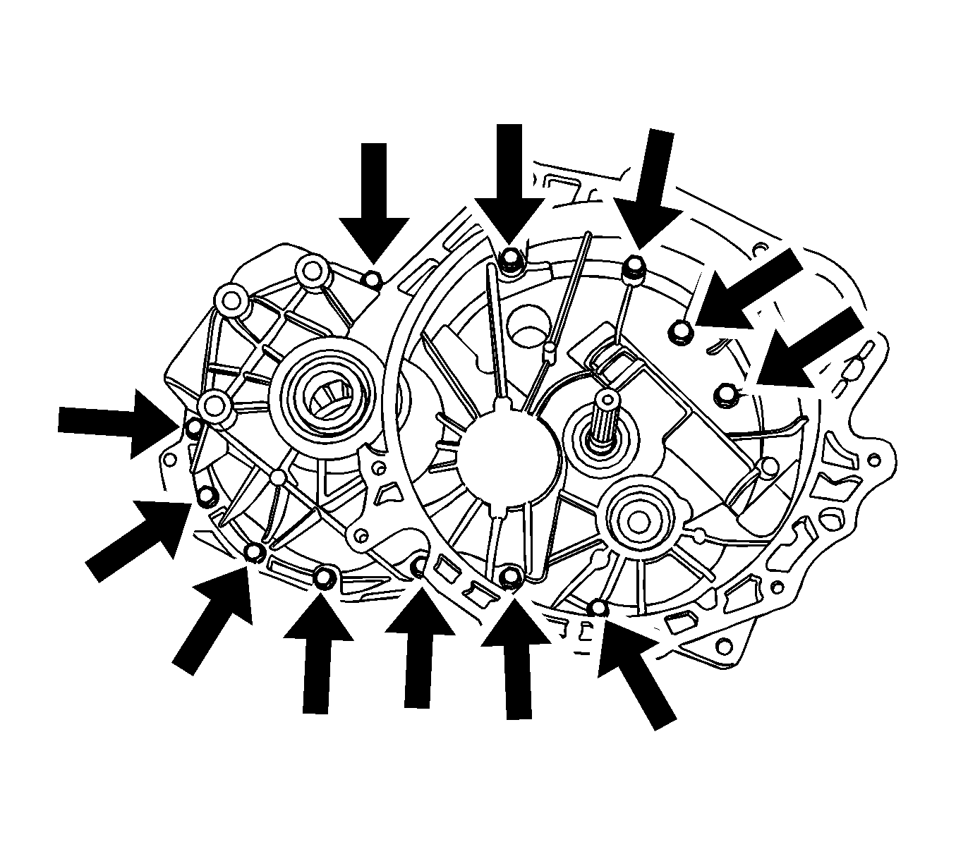 - Install the clutch housing to transaxle housing bolts.
