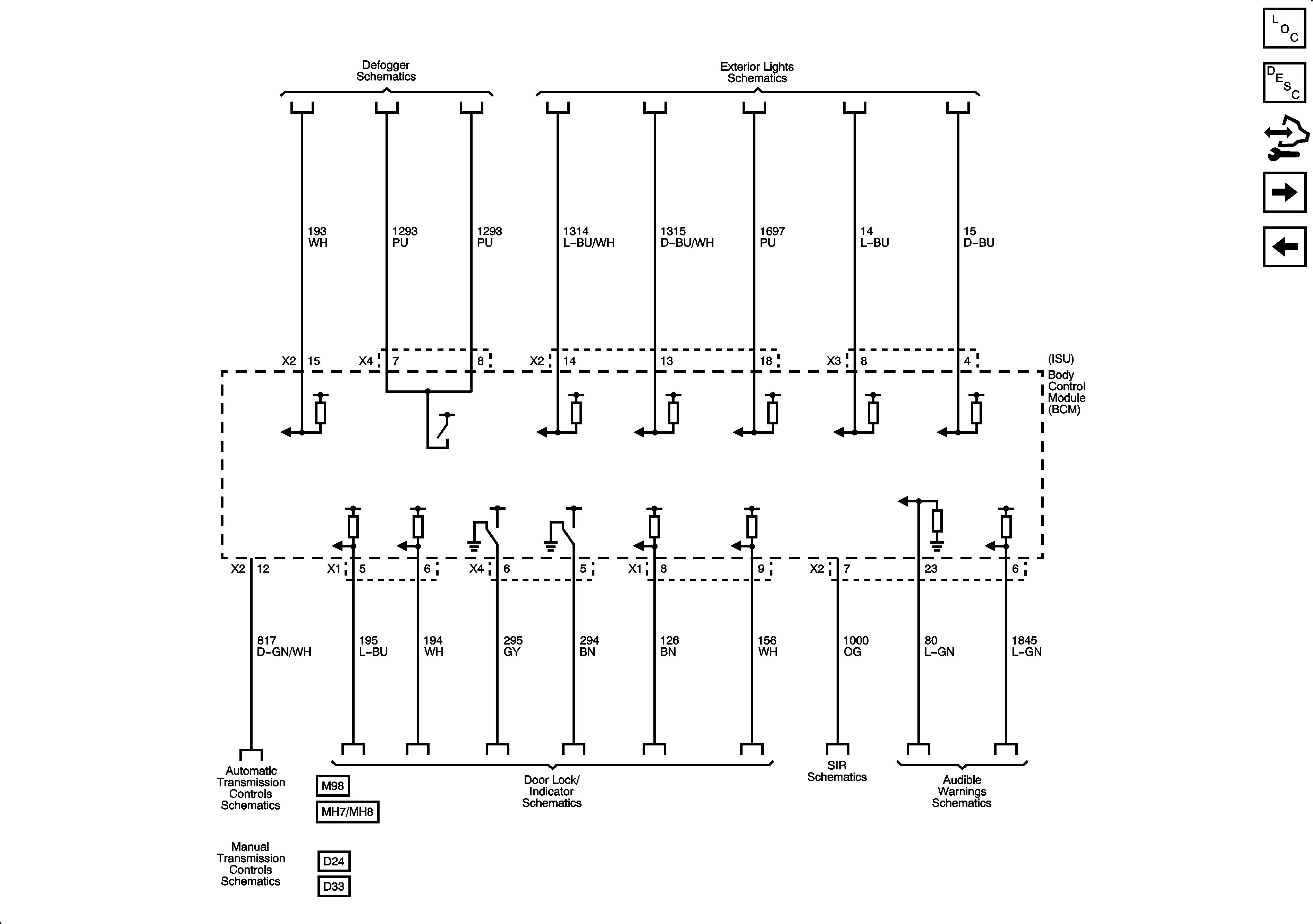 BCM References - Audible Warnings, Defogger, Door Lock/Indicator, Exterior Lights, SIR, Transmission