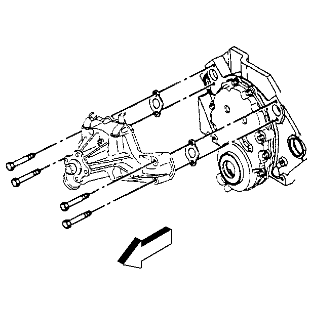 • Tighten the water pump to the front cover bolts to 42 N·m (32 lb ft).