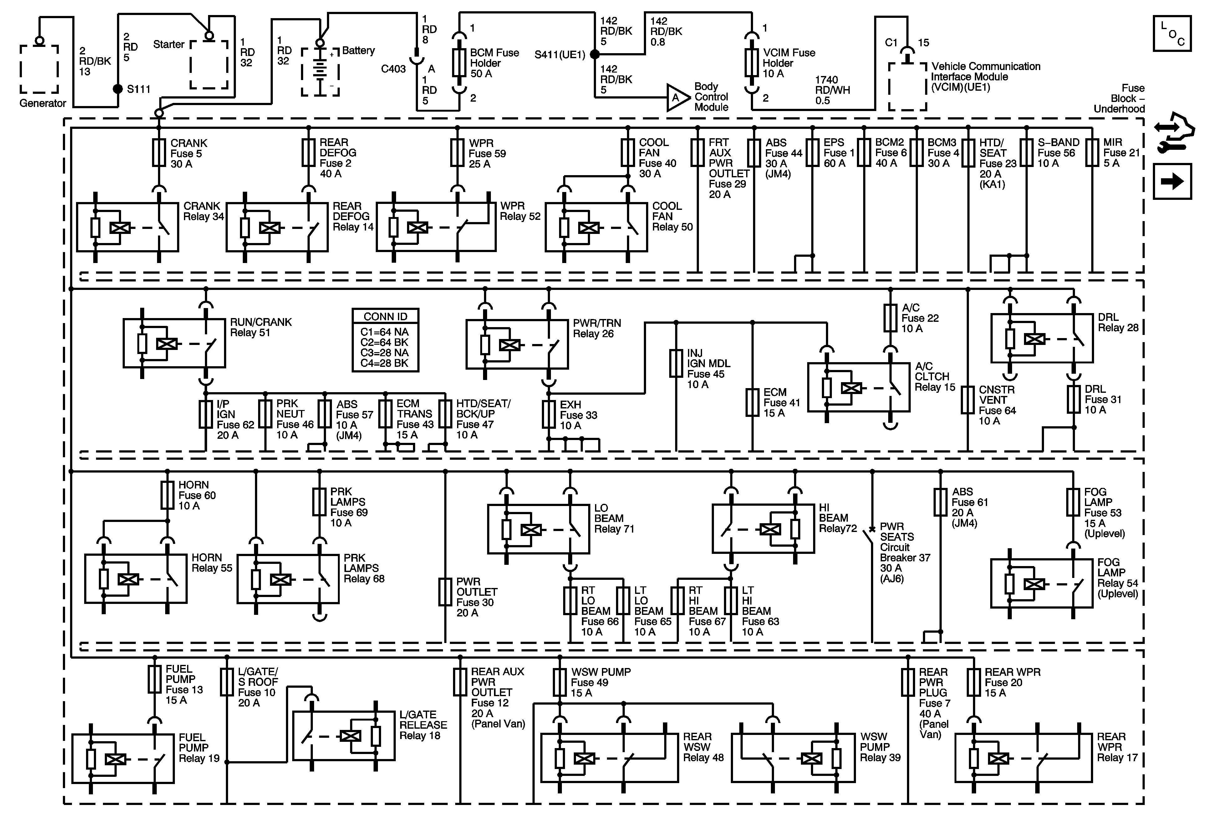 Body Control Module - RAP, DRIVER DOOR UNLOCK PCB, DOOR UNLOCK PCB, DOOR LOCK PCB, and INTERIOR LAMPS PCB Relays, RDO, PWR WINDW, DR LCK, INT LIGHT, ECM/TCM, SDM, S ROOF and SPARE Fuses