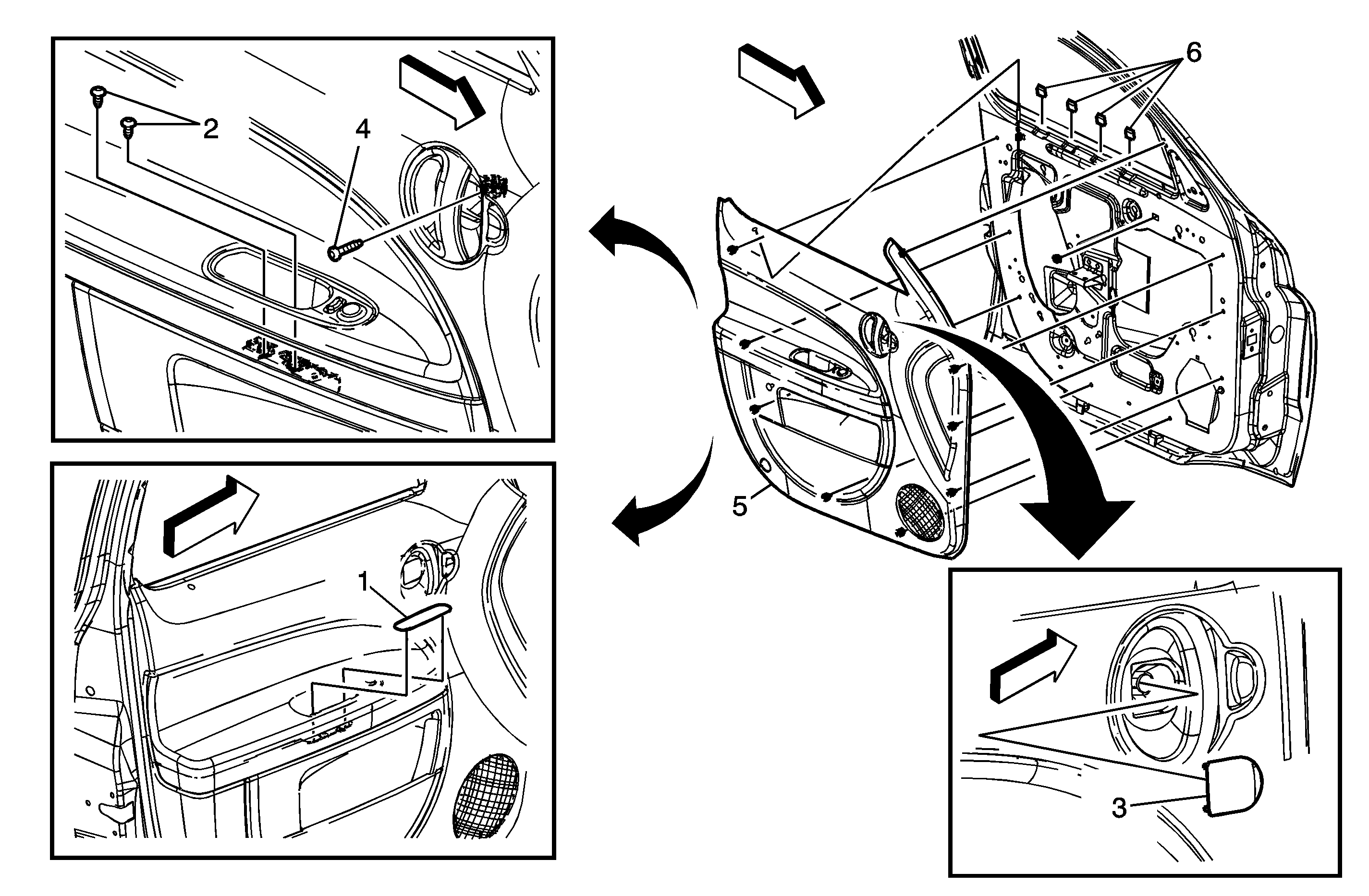 2 | Front Side Door Armrest Pull Cup Screws (Qty: 2) Notice: Refer to Fastener Notice in the Preface section. Tighten |