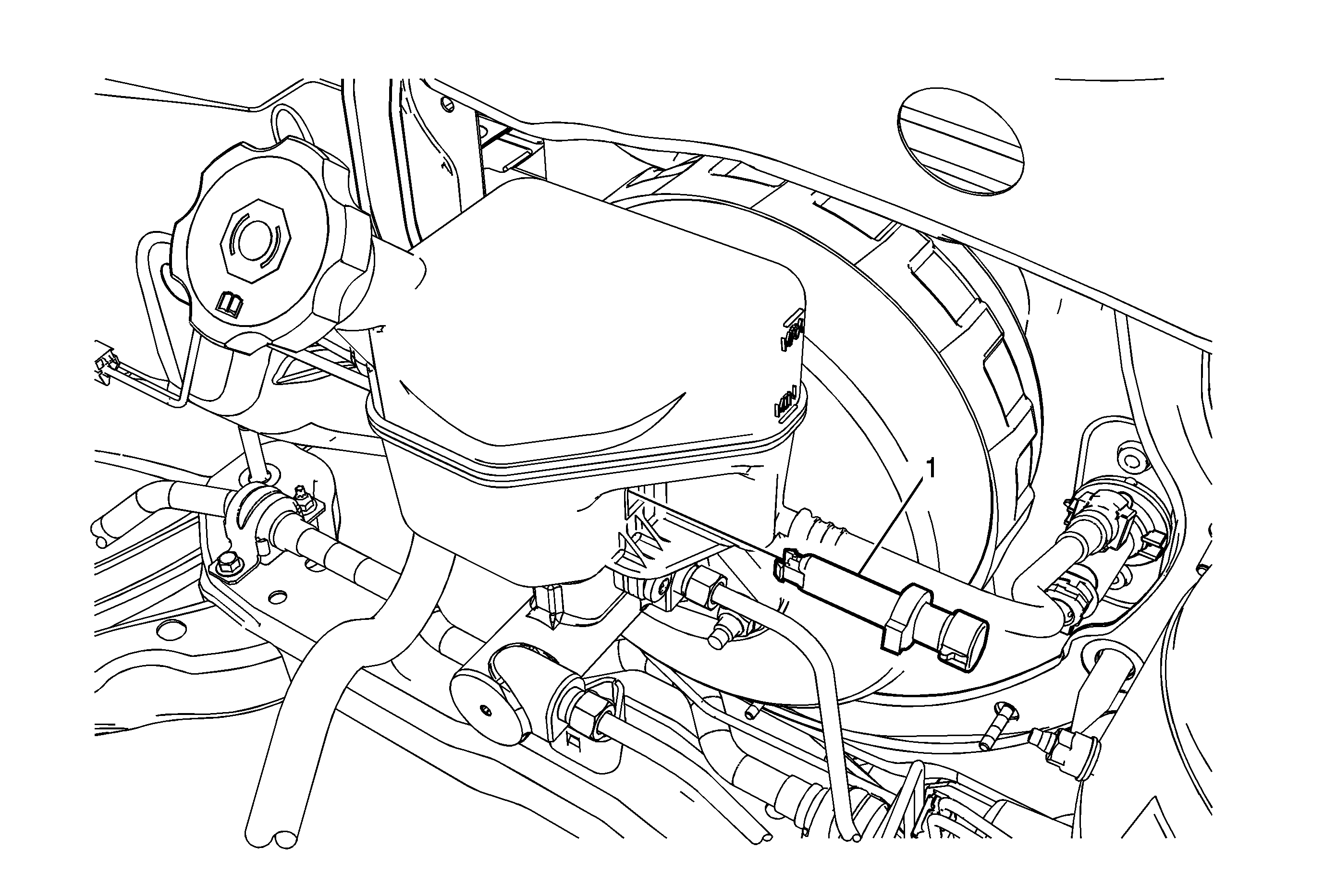 Compress the brake fluid level sensor locking tabs on the inboard side of the master cylinder reservoir and remove the sensor.