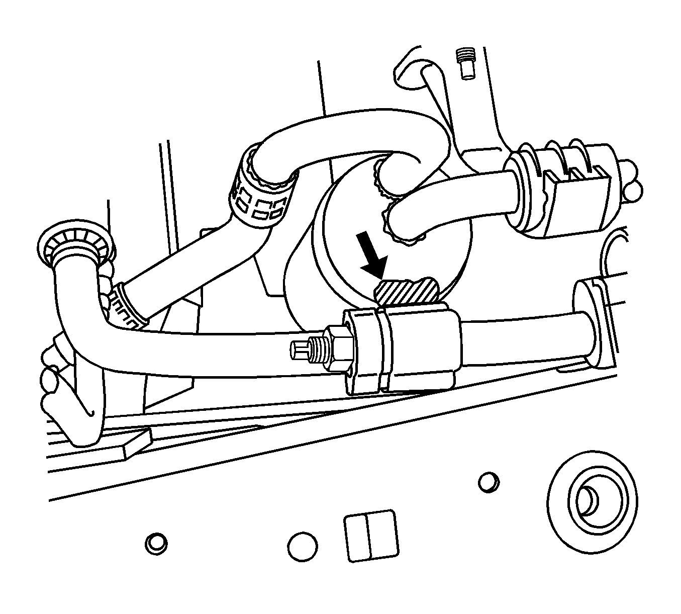 | 3.8. | Check that the rubber grommet around the A/C compressor inlet pipe is properly positioned in the bracket that is attached to the left frame rail. Reposition the rubber grommet if necessary. |