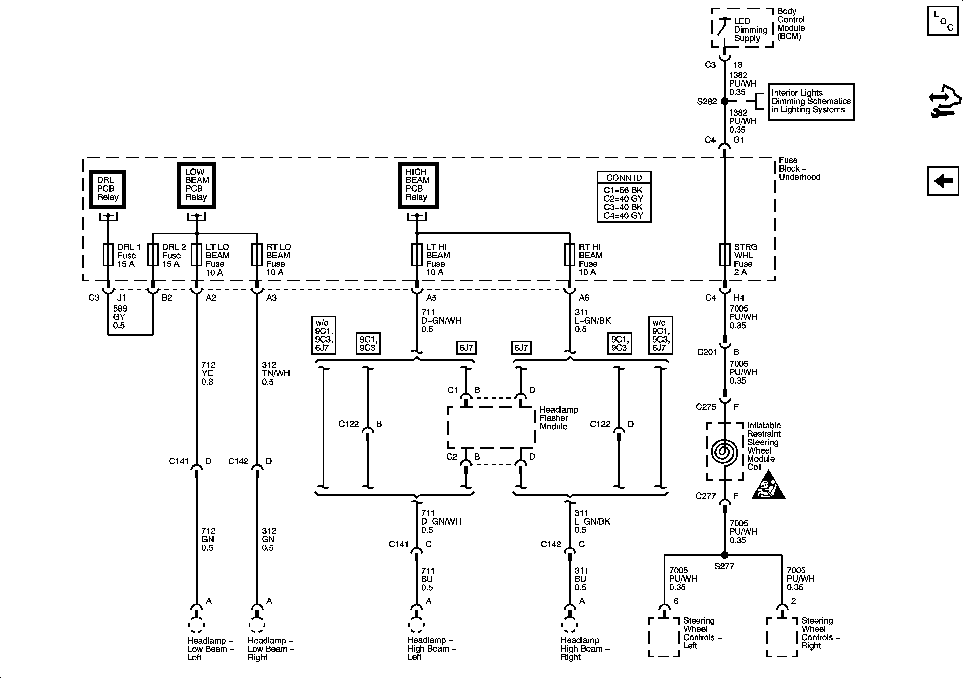 DRL 1, DRL 2, LT LO BEAM, RT LO BEAM, LT HI BEAM, RT HI BEAM, and STRG WHL Fuses