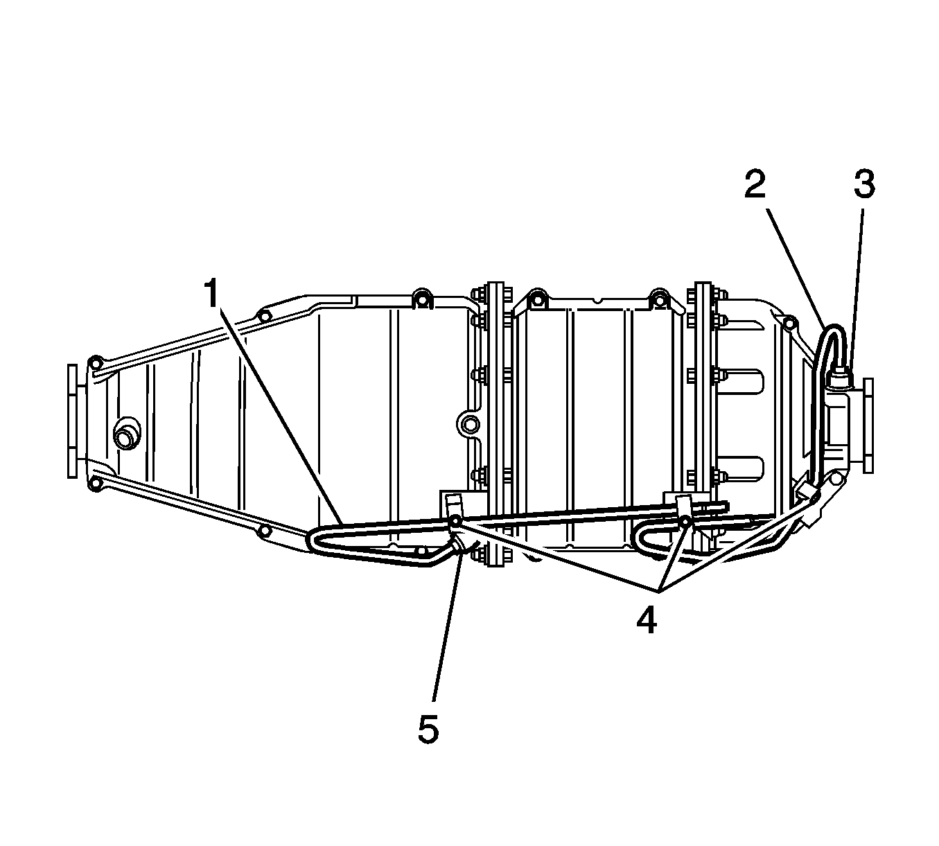 - Loosen the differential pressure pipes fittings (3,5) until they are entirely disengaged from the exhaust particulate filter assembly.