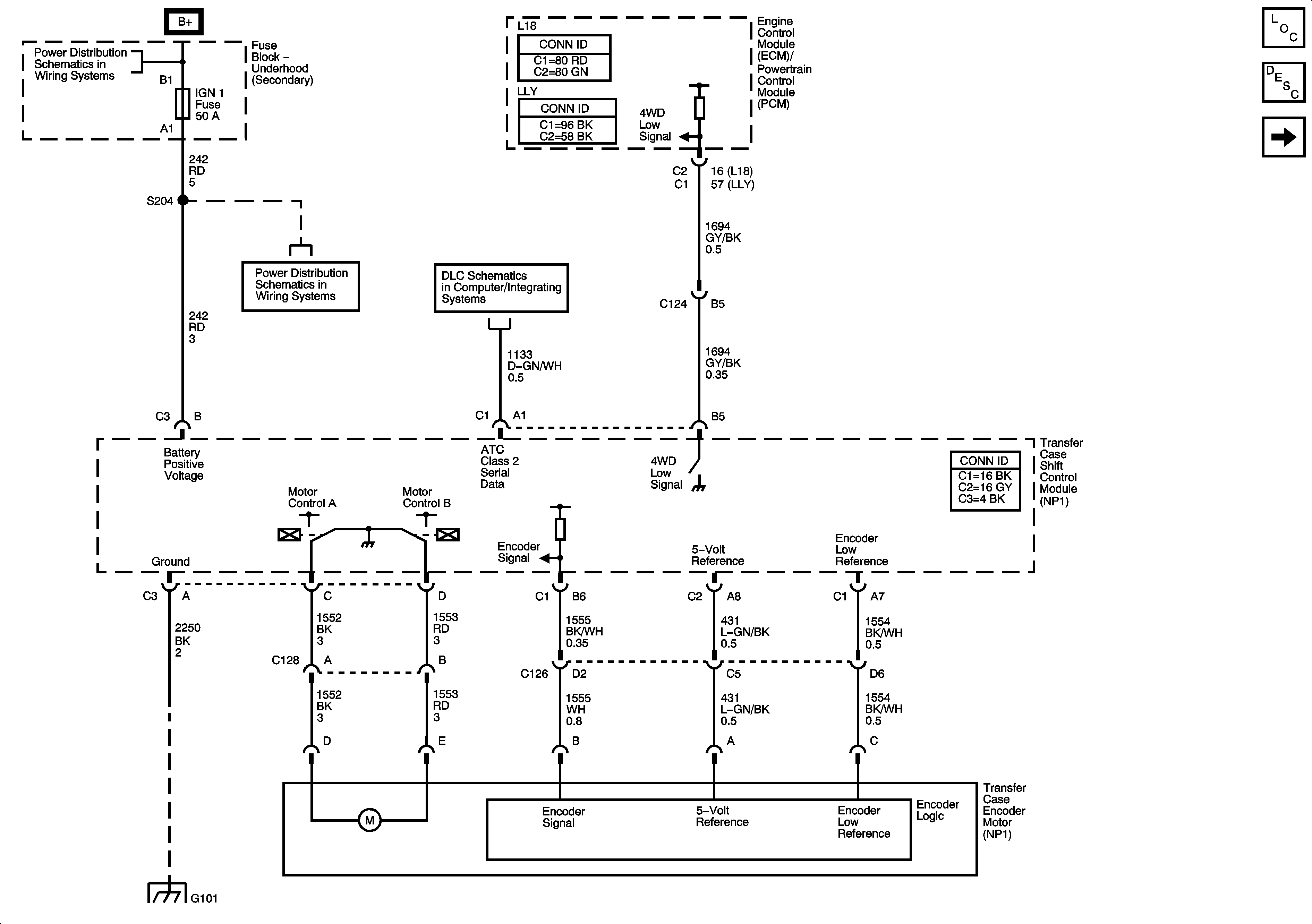 Power, Ground, Class 2 Serial Data, Transfer Case Shift Control Module and Transfer Case Encoder Motor