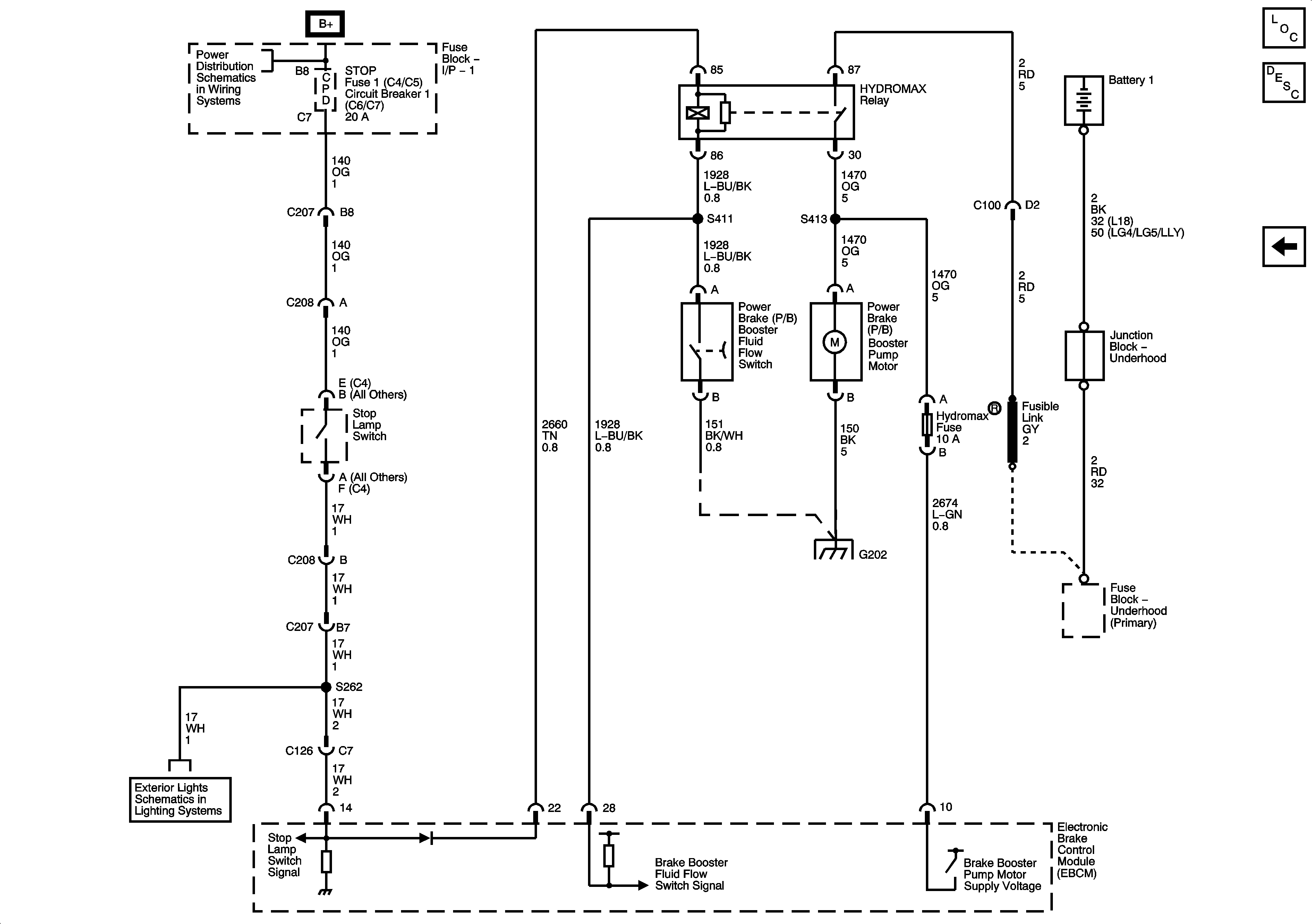Power Brake (P/B) Booster Pump Controls and Stop Lamp Switch
