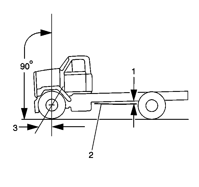 Caster dimensions are given for a vehicle carrying its design load equal to the capacity of the vehicle's suspension (GVWR). Test the alignment when the frame is level. If you test the alignment when the frame is not level, determine the frame angle and add this angle to the caster angle, in order to obtain a true caster measurement. In order to determine the frame angle and the caster, complete the following steps: